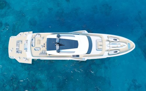 Wider Superyachts are the first in their category to combine an extraordinarily efficient hybrid propulsion system with azimuth thrusters. This union reduces fuel consumption, noise and vibrations while considerably increasing range thus ensuring great flexibility for designers.