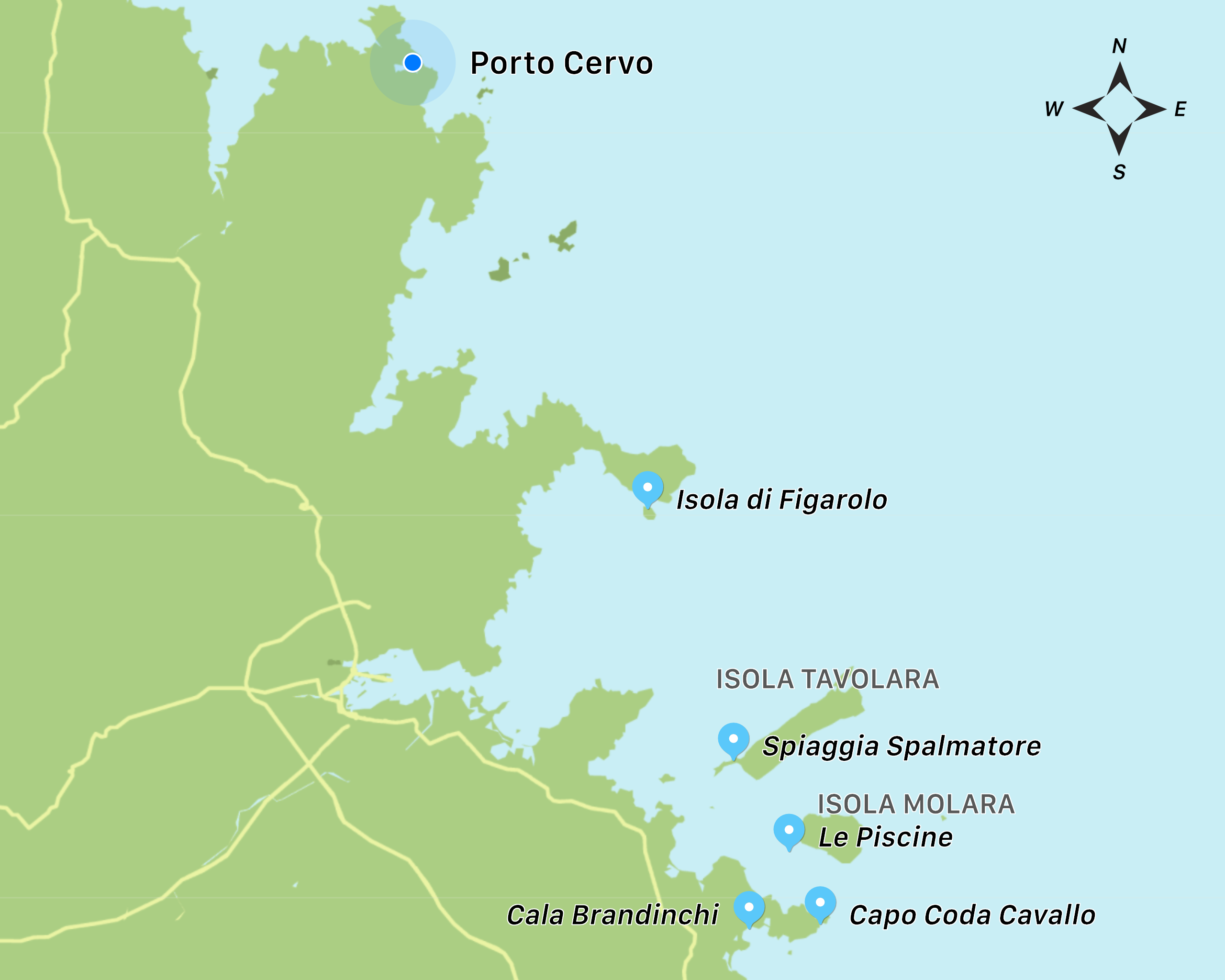 Isola di Figarolo, Spiaggia Spalmatore and Isola Tavolara.