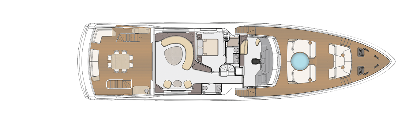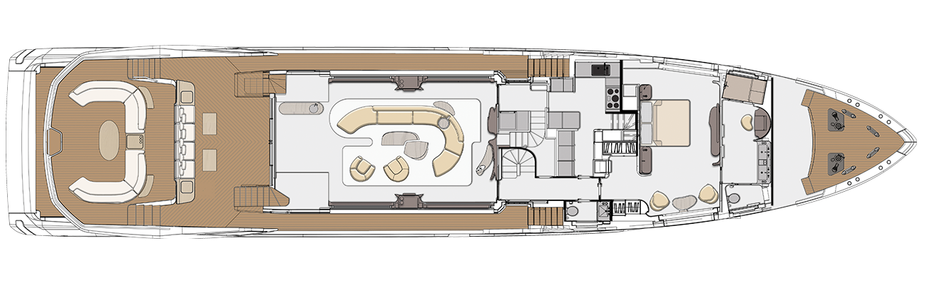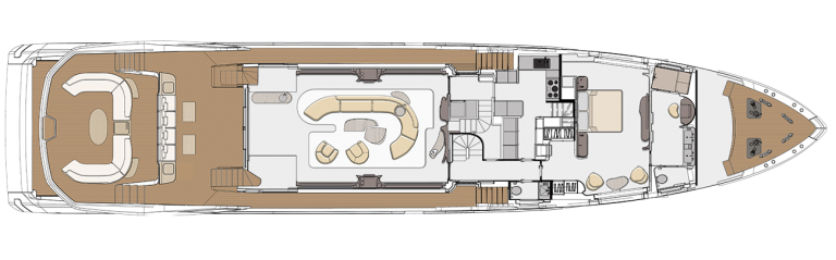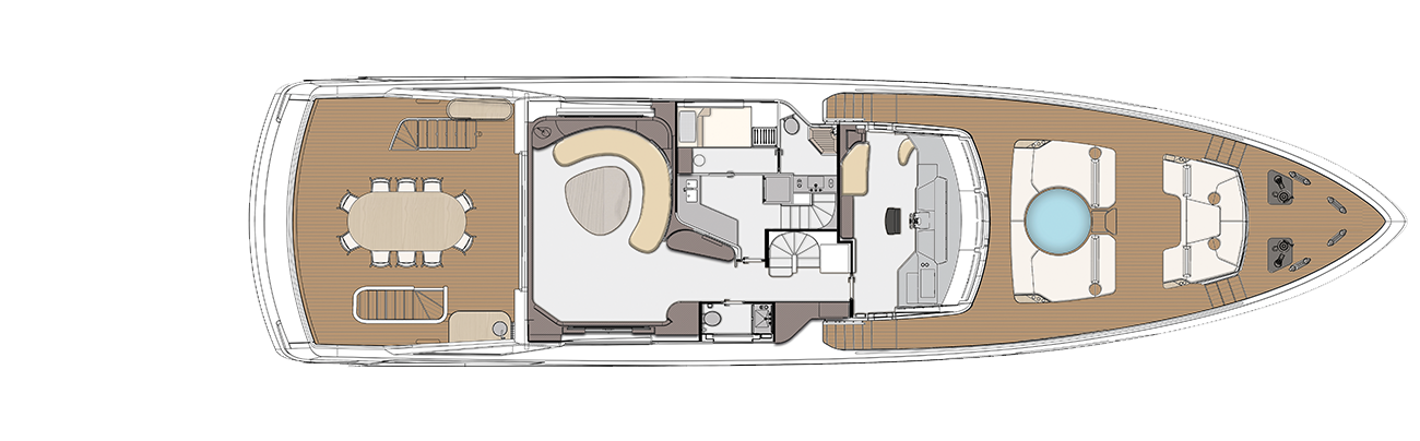 The sights and sounds of the waves, wake and wind mix with the unexpected play of light and reflections to place the Trideck in her mystical element. In bringing the virtual walkthrough to life, Azimut has preserved the special sense of openness and contact with the sea that could previously be experienced only onboard.