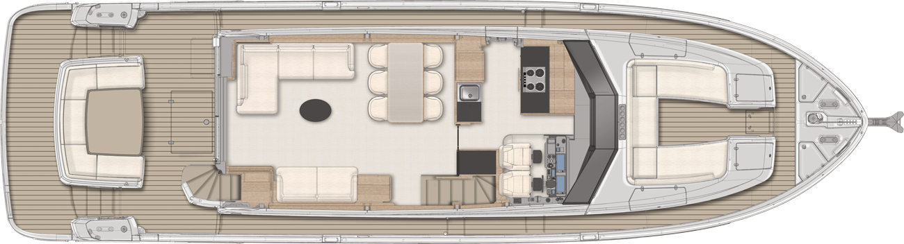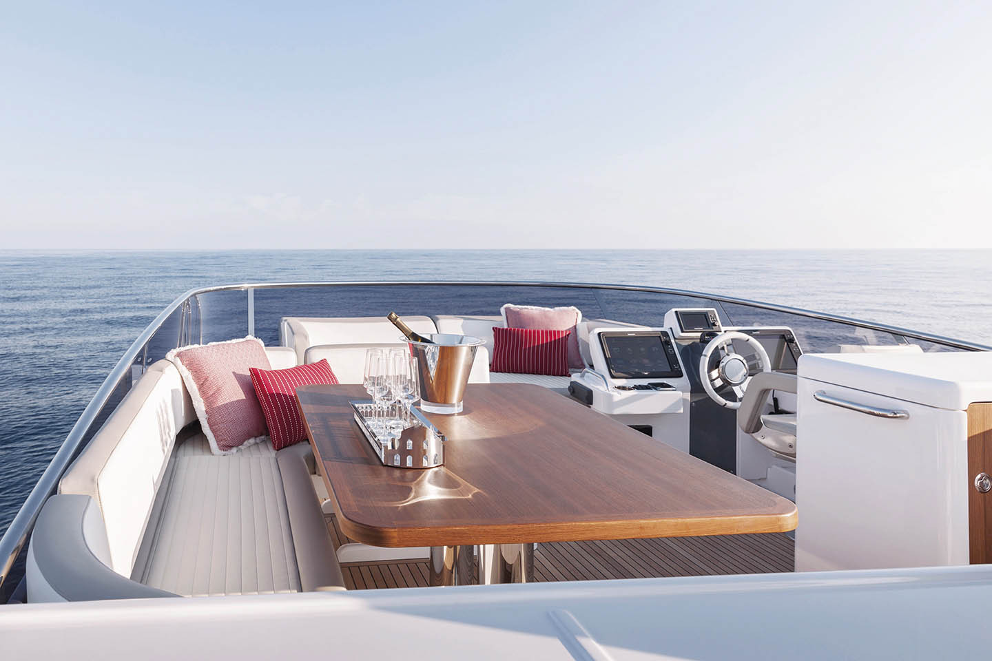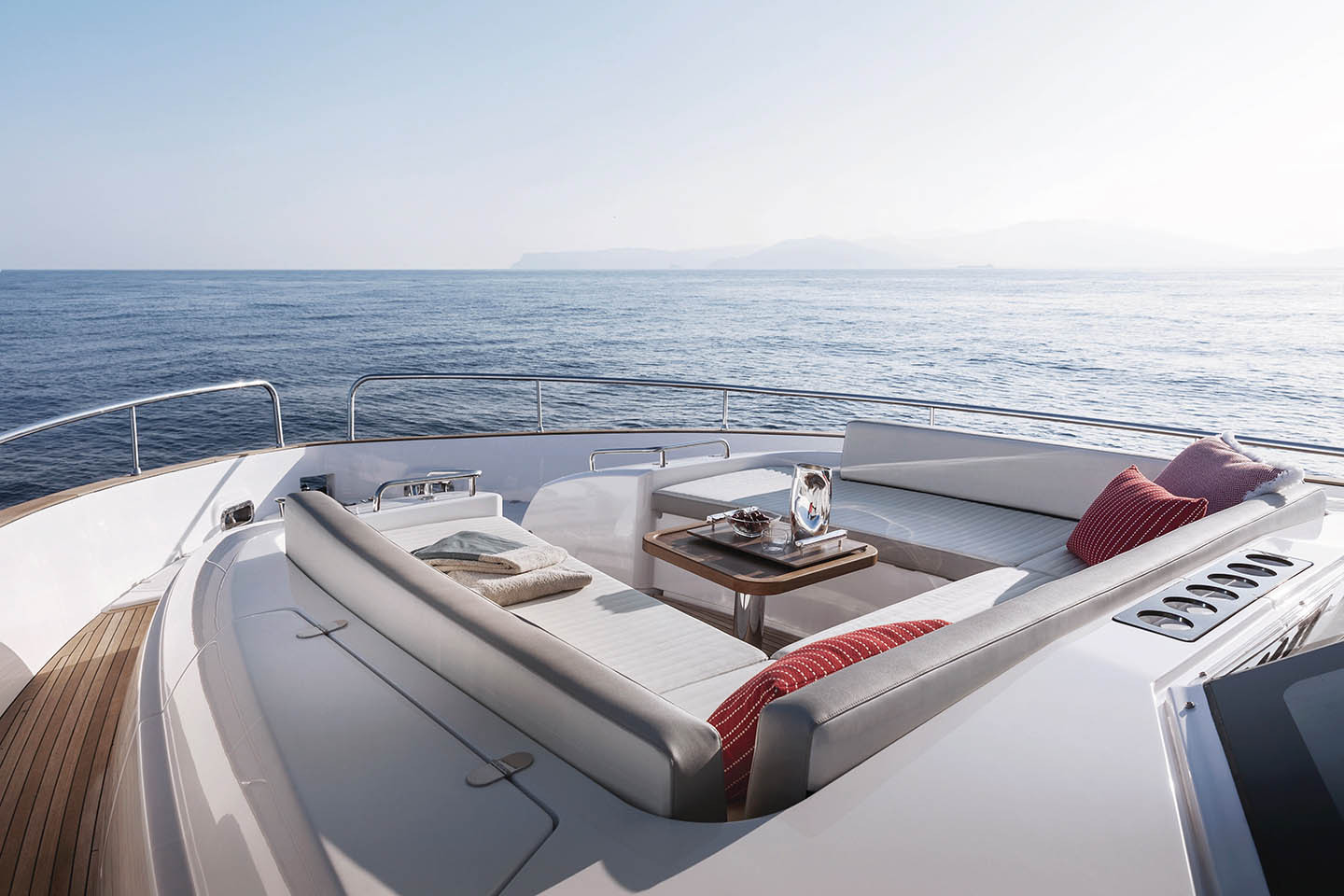 bow side, the sun deck is as comfortable as a private oasis and provides an