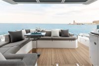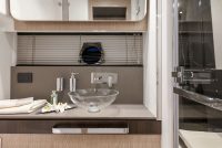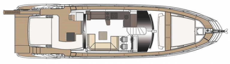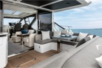 They say technology opens up new horizons and thatʼs certainly the case for the new S6. The use of carbon fi ber and a propulsion system featuring three Volvo IPS units mean you can have everything youʼve always desired from a classy sports motor yacht, without compromising on comfort: a huge living space split between indoor and outdoor areas, three roomy cabins and a garage big enough for a 3.3-metre (10ʼ 10ʼʼ) jet tender. Because there are times when you can, in fact, have everything.