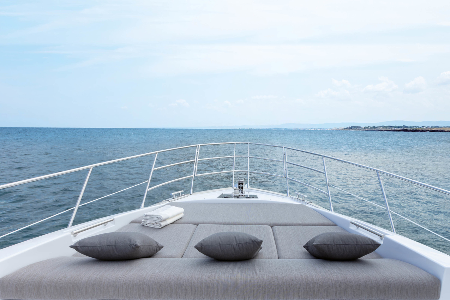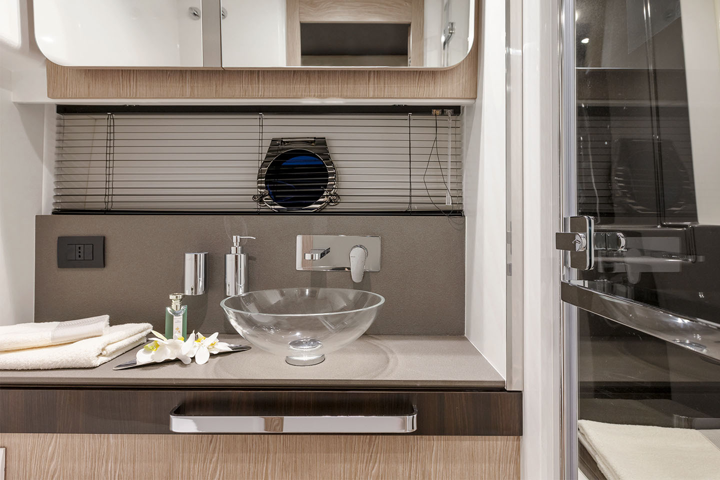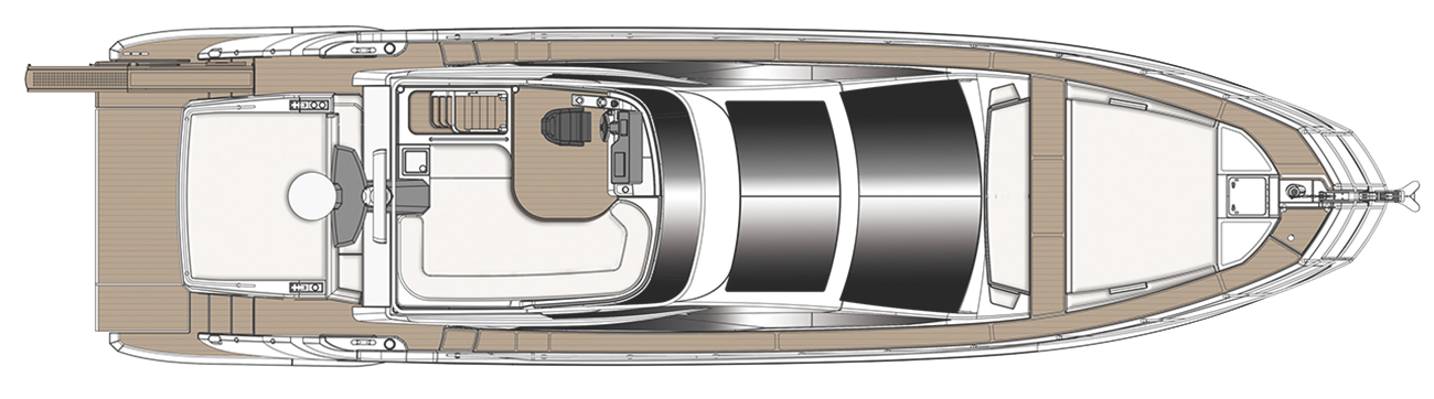 They say technology opens up new horizons and thatʼs certainly the case for the new S6. The use of carbon fi ber and a propulsion system featuring three Volvo IPS units mean you can have everything youʼve always desired from a classy sports motor yacht, without compromising on comfort: a huge living space split between indoor and outdoor areas, three roomy cabins and a garage big enough for a 3.3-metre (10ʼ 10ʼʼ) jet tender. Because there are times when you can, in fact, have everything.