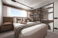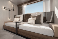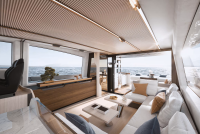 A marvel of razor agility and precision, she guaranteesthe lowest fuel consumption possible and a uniquely quiet allure. The main deck offers a fluid continuum between indoor and outdoor zones, allowing guests to savor their time and space at sea instinctively, incomplete and harmonious freedom.