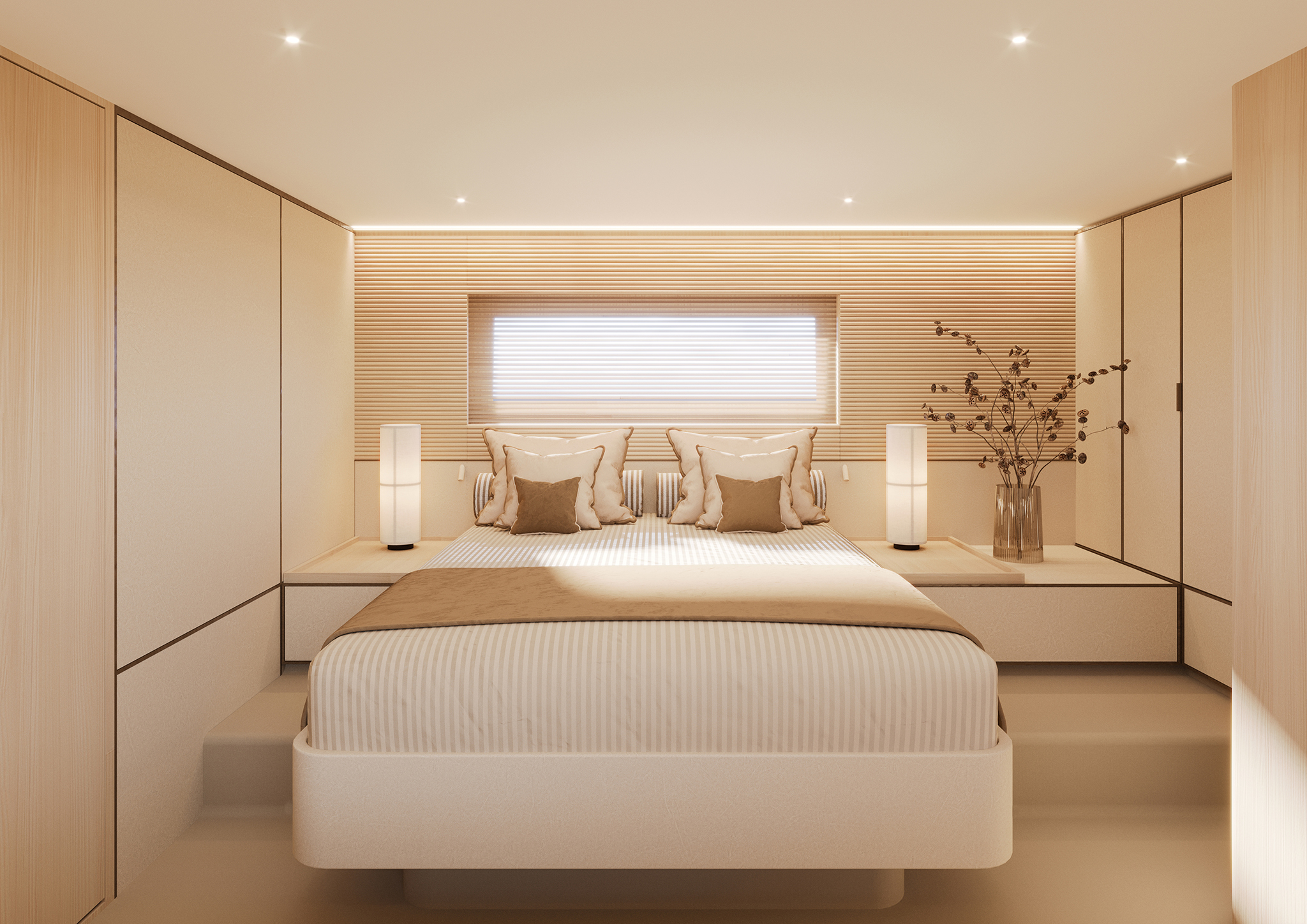 Alberto Mancini creates an innovative concept, in which from the very first sketches the exterior naturally interacts with the interior. The lines evolve from dynamic to sinuous and essential, tracing the infinite space of the Fun Island, for an authentic contact with nature and an extreme freedom on board.