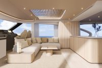 Embracing a more conscious relationship with nature. Seadeck 6 is the first yacht of the most efficient Series of boats ever designed, thanks to technological solutions aimed at reducing emissions by up to 40% and the Fun island, a reinvented cockpit that embraces the sea, an unprecedented sea-level outdoor lounge for limitless contact with the water, maximizing the relationship with the ocean to offer an immersive and harmonious natural experience all around and a new lifestyle based on well-being.