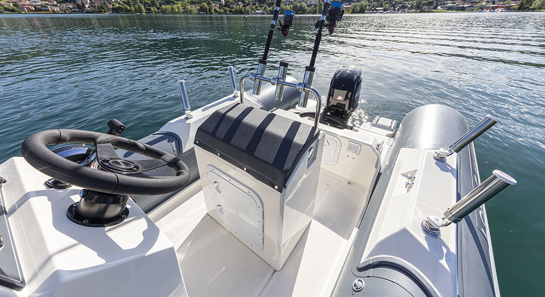 - 4 passive rod holders on console seat with water discharge pipe and closing cap