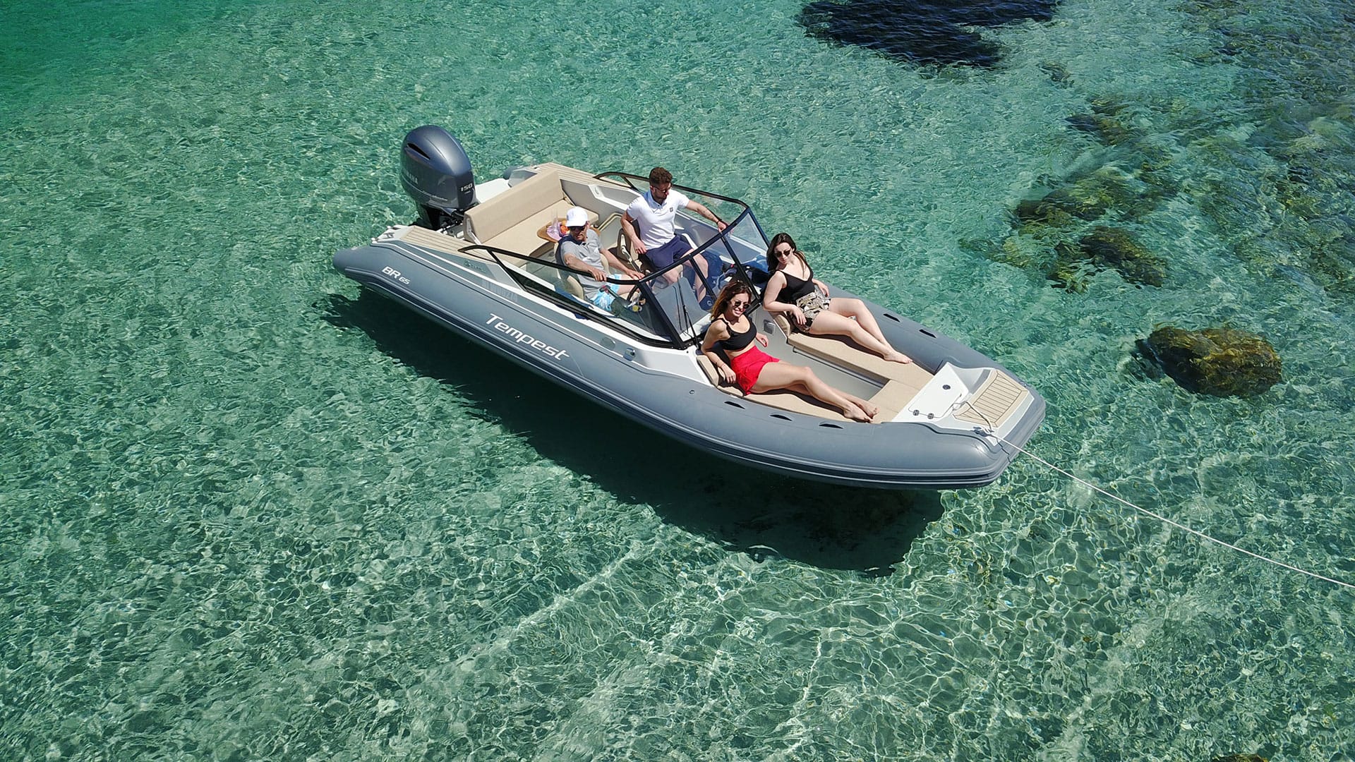 Tempest BR 65, is not a simple rigid inflatable boat, but it stands out as the starting point to a new boat concept. Its attractive design and modern lines, made sporty by the coloring in grey livery, will catch your eye from the very first sight.