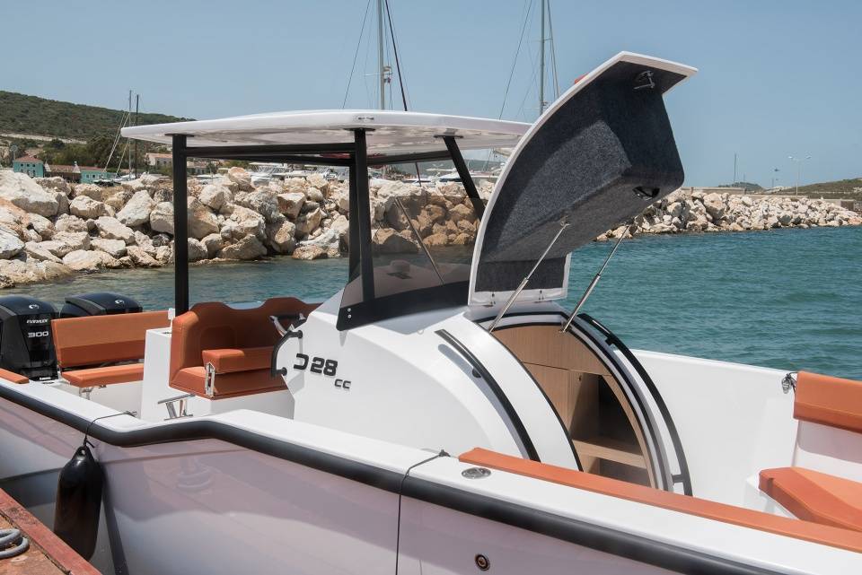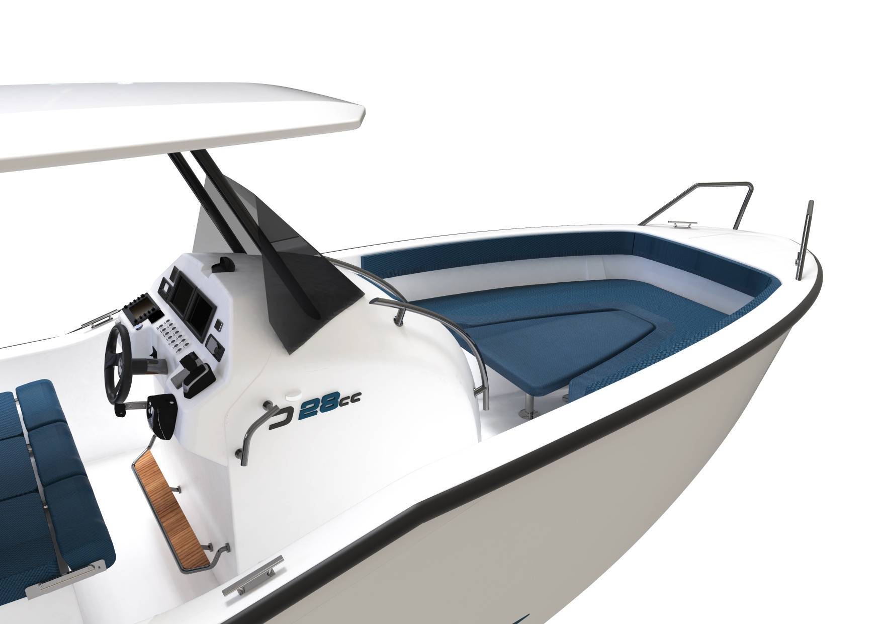 The D28 CC has been developed with escapism in mind, whether its ‘blowing away cobwebs’, fishing, diving or just a fun day with family and friends; the D28 CC is one for all. The twin stepped deep V performance hull gives a comfy ride even in rough conditions. With multiple cockpit layouts and generous side decks, the D28 CC means you can move around freely, whilst feeling safe and secure. This model is a driver’s dream, and we want to make sure you and your guests are always smiling when onboard the D28 CC.