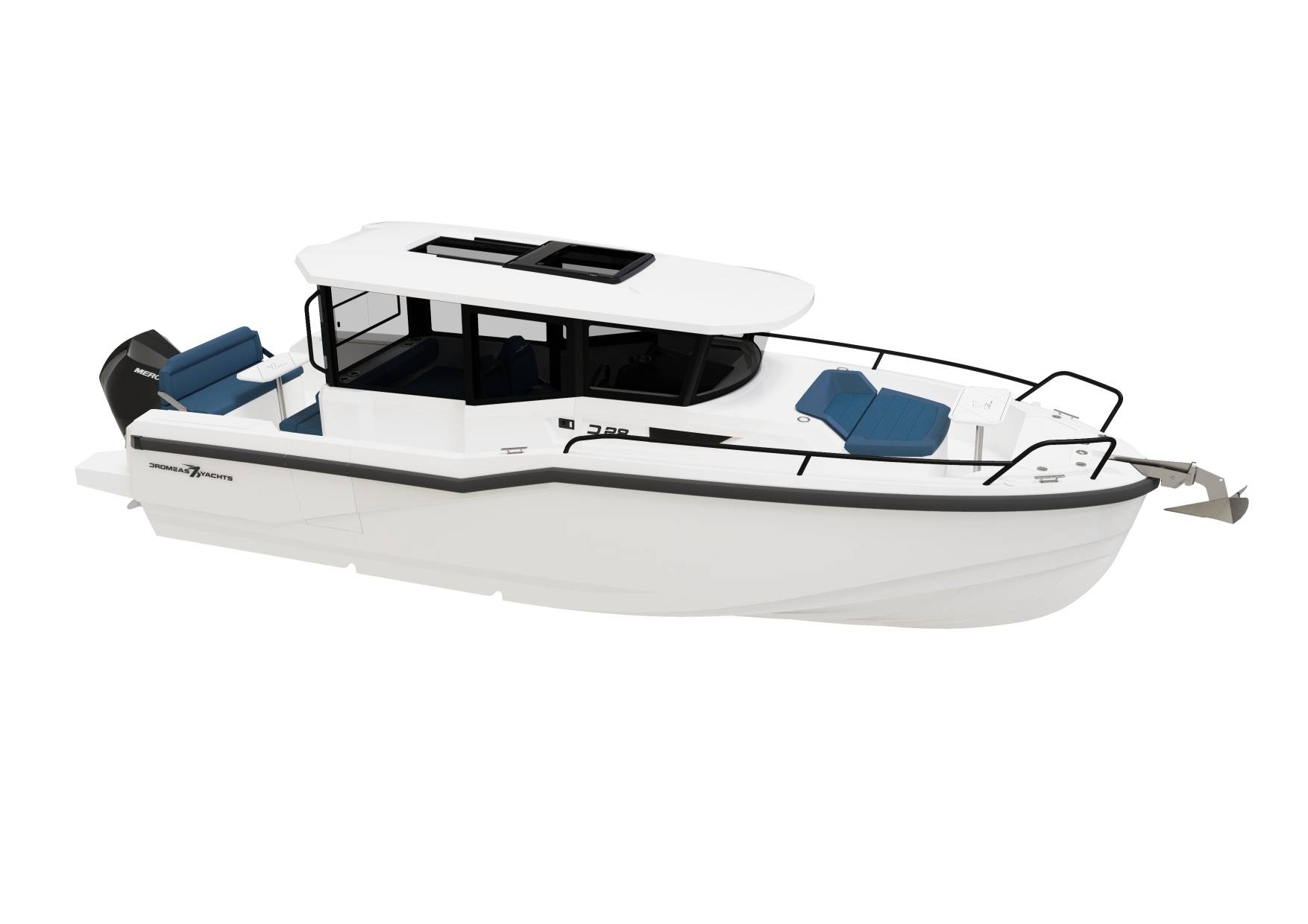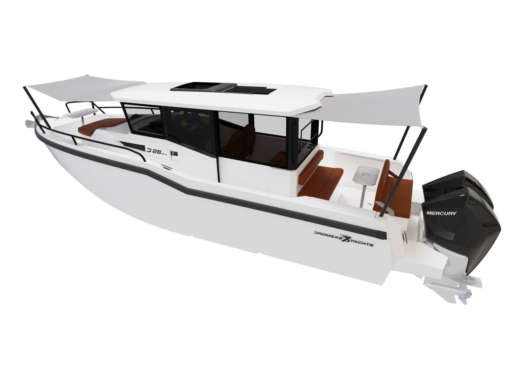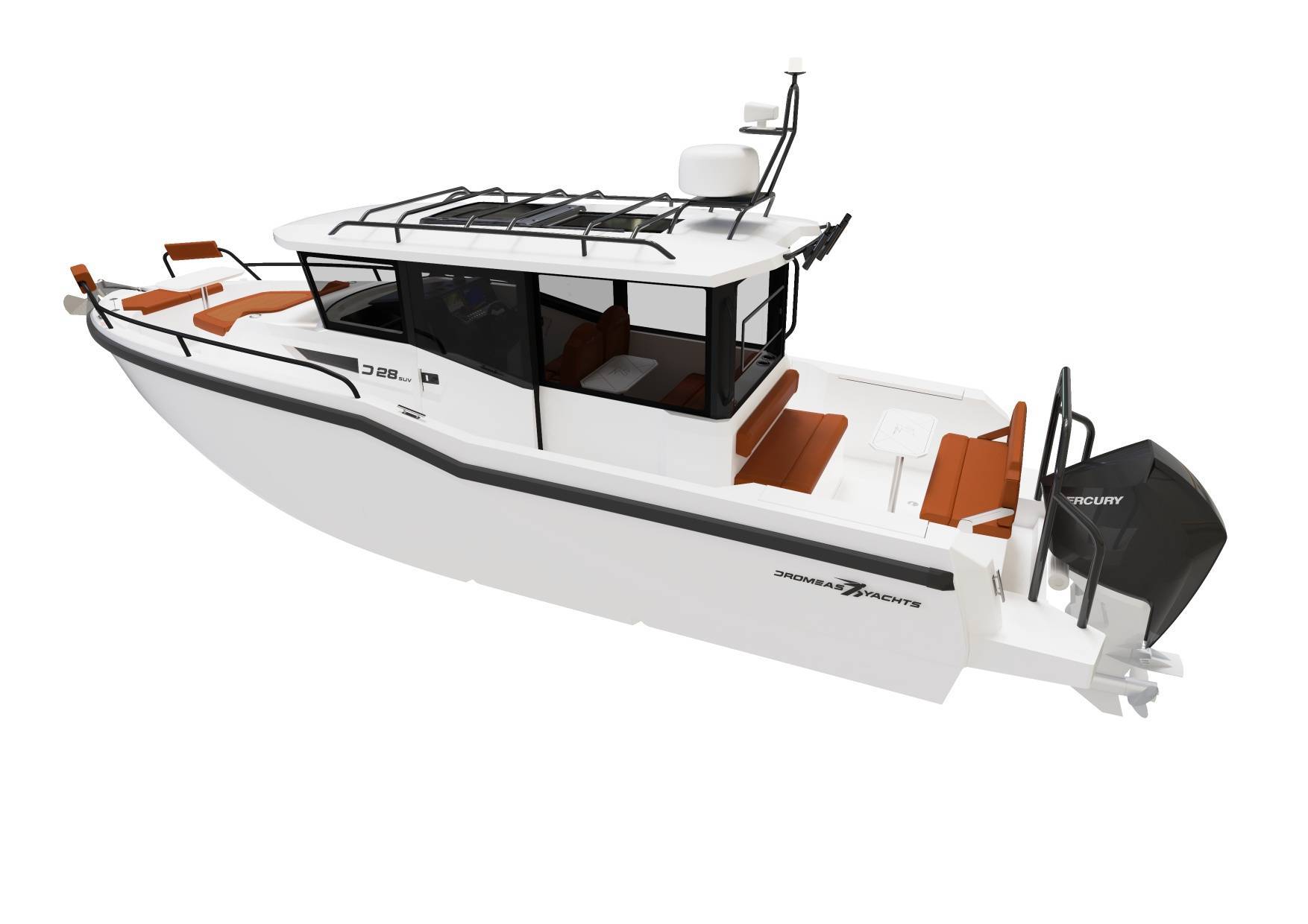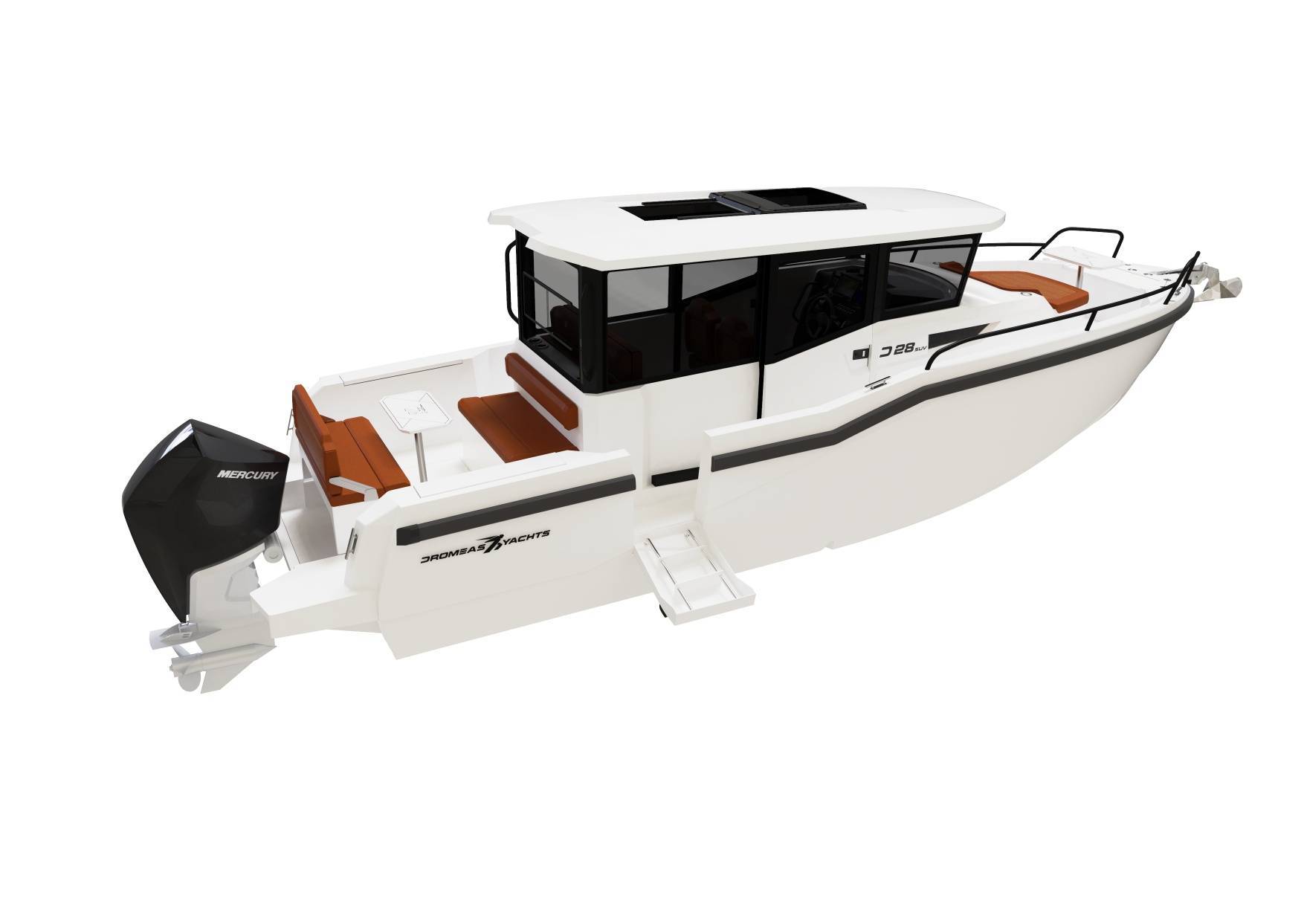 The D28 SUV is universal all-rounder and is from the core of the Dromeas spirit. An enclosed helm with ample seating for all the family, you really can go anywhere, anytime! Overnight capabilities with a cabin that utilizes every bit of space, matched with wide side decks and functional cockpit arrangements, the D28 SUV really is an all-in-one package!
