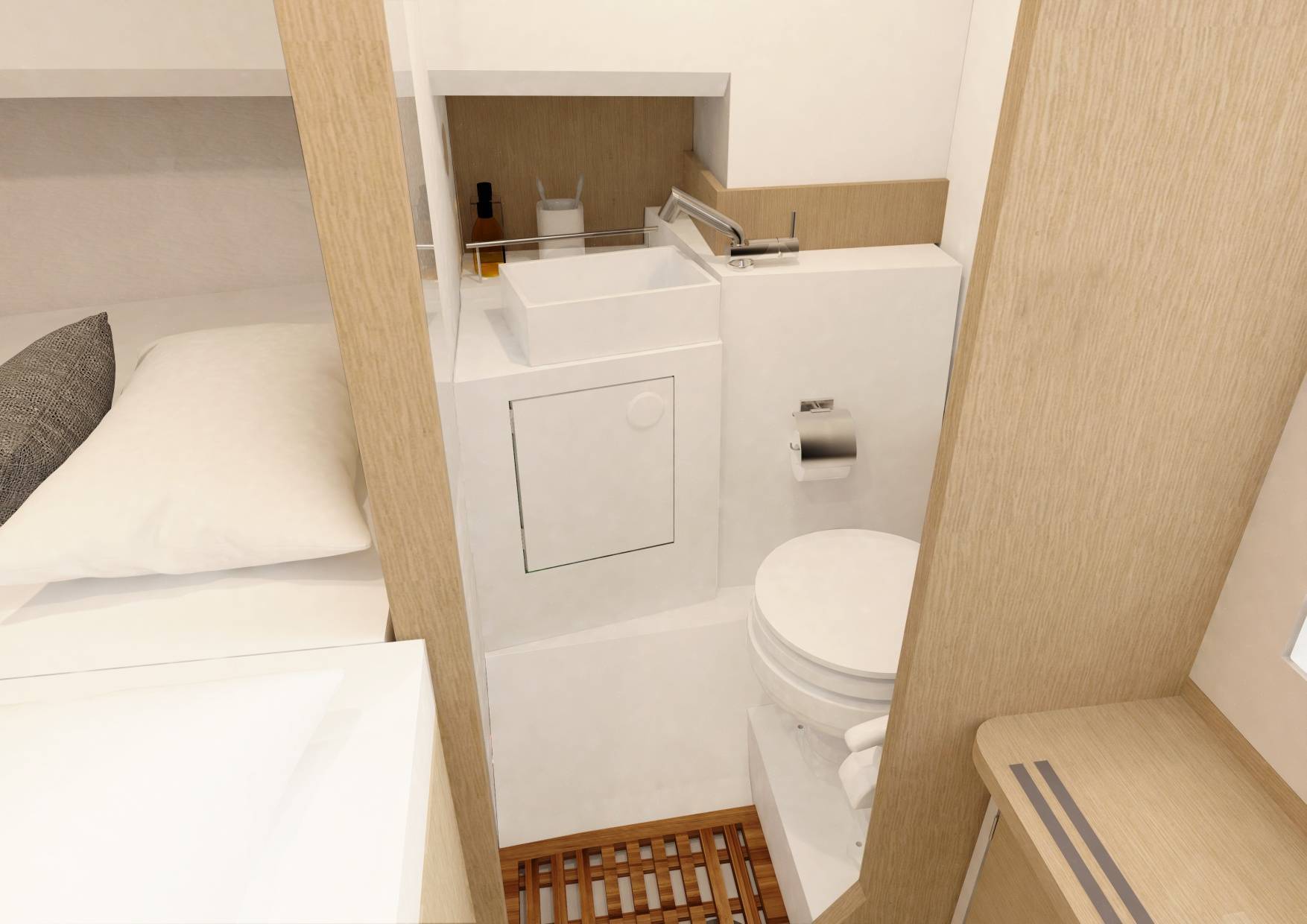 Access to hull & bow thruster under bed