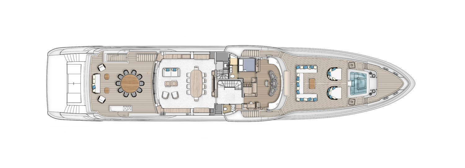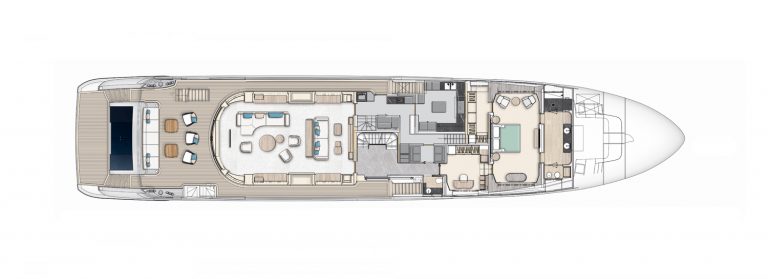The size of Diamond 44M offered the opportunity to develop an imposing vessel with a majestic bearing and highly contemporary detailing, combined with an approach to style that reflects the idea of a timeless yacht”. Giorgio M. Cassetta