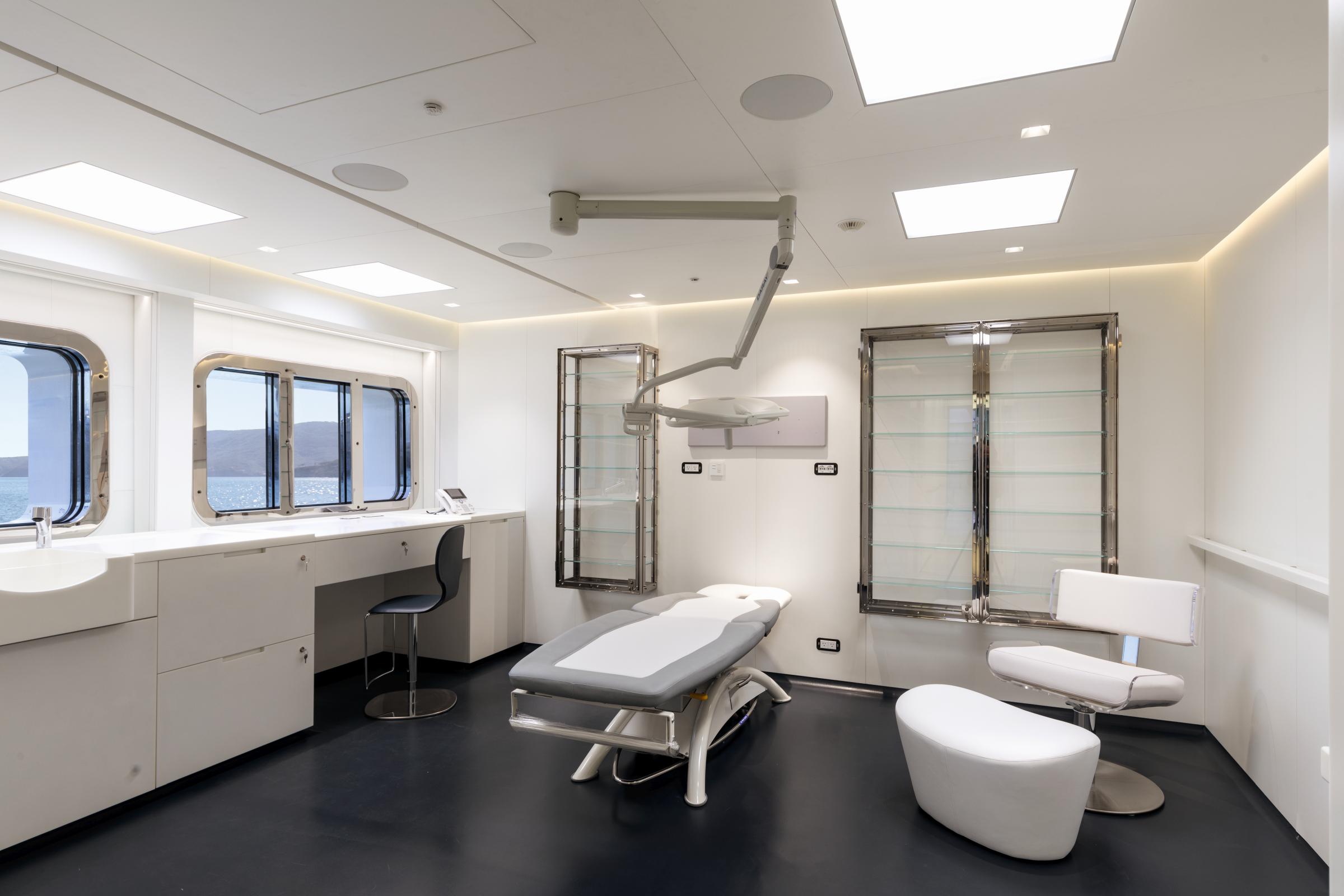 Preventive measures ensure safety in any situation. From sand filters and retractable stabilizer fins to a medical center with an air sanitation system. So much more than just a practical purpose. Energy and technology bring to life some modern works of art on board. Over 370 meters of interactive panels show powerful images of nature letting them come alive and the 264 white magnolia flowers on the Main Saloon wall, silently open and close as a person passes through, miming the ever-evolving perfection of Nature.