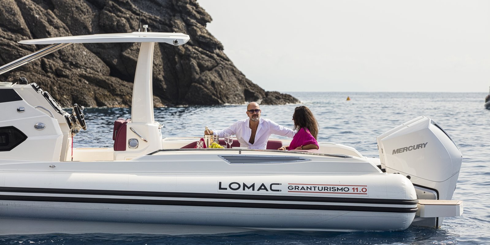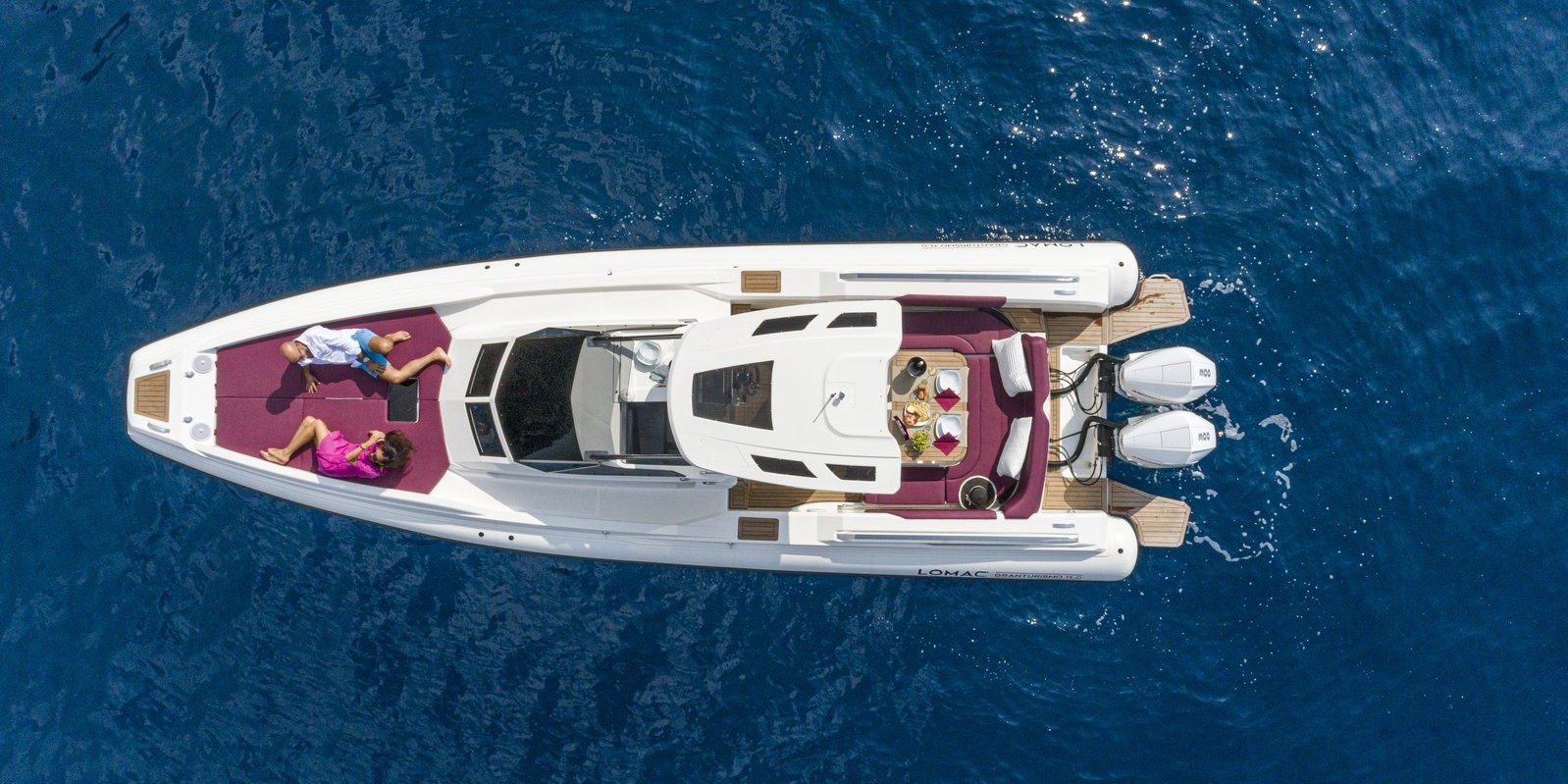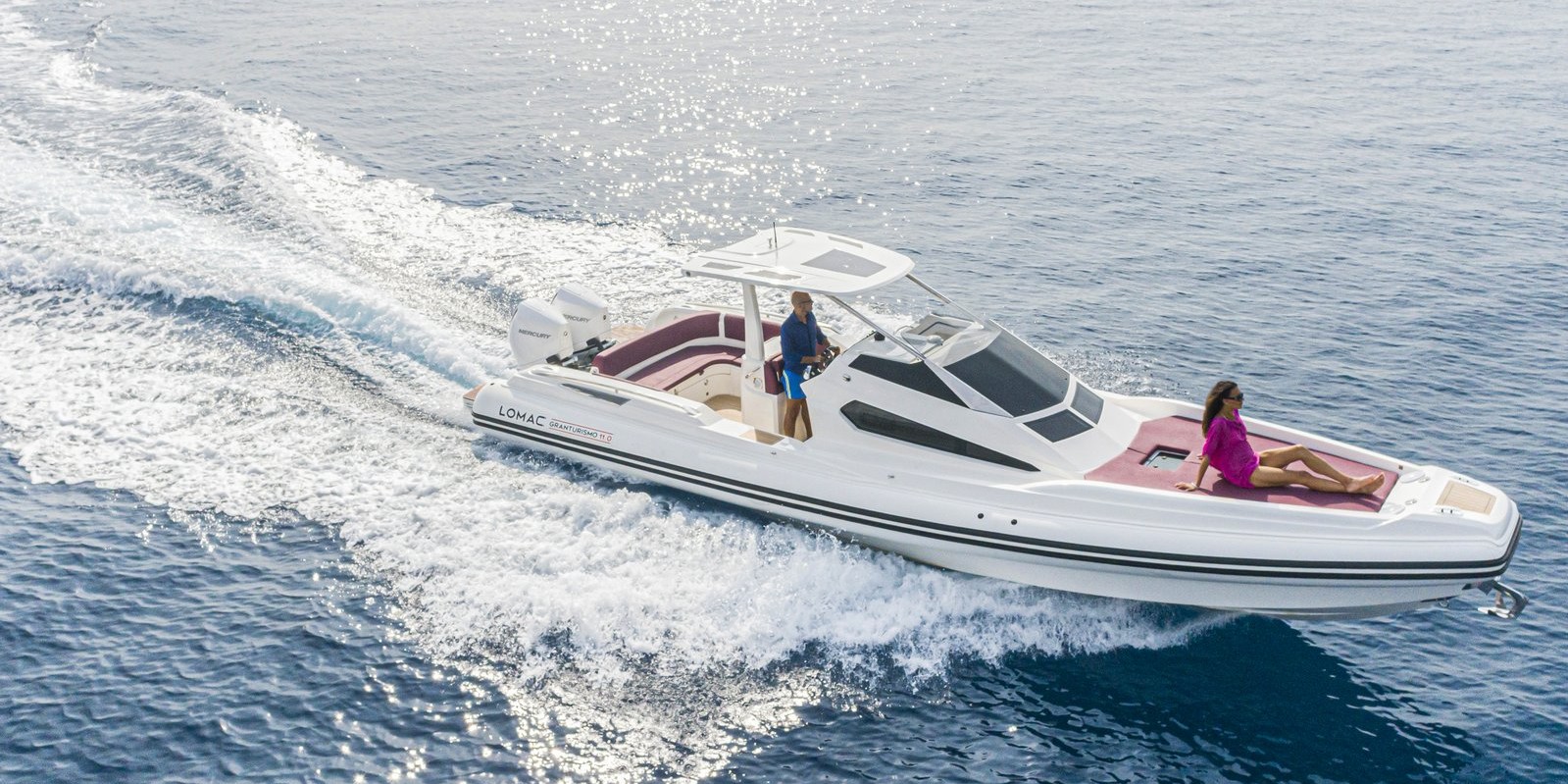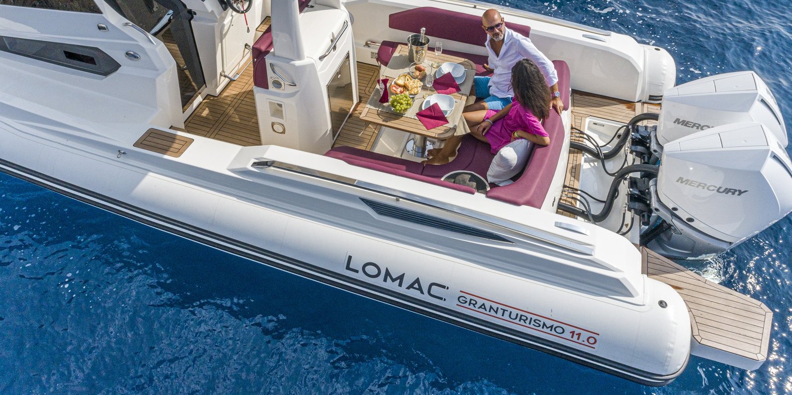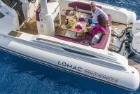 The sleek lines and performance you expect from a Lomac GranTurismo, with 30% more cabin space and large storage areas for short cruises.