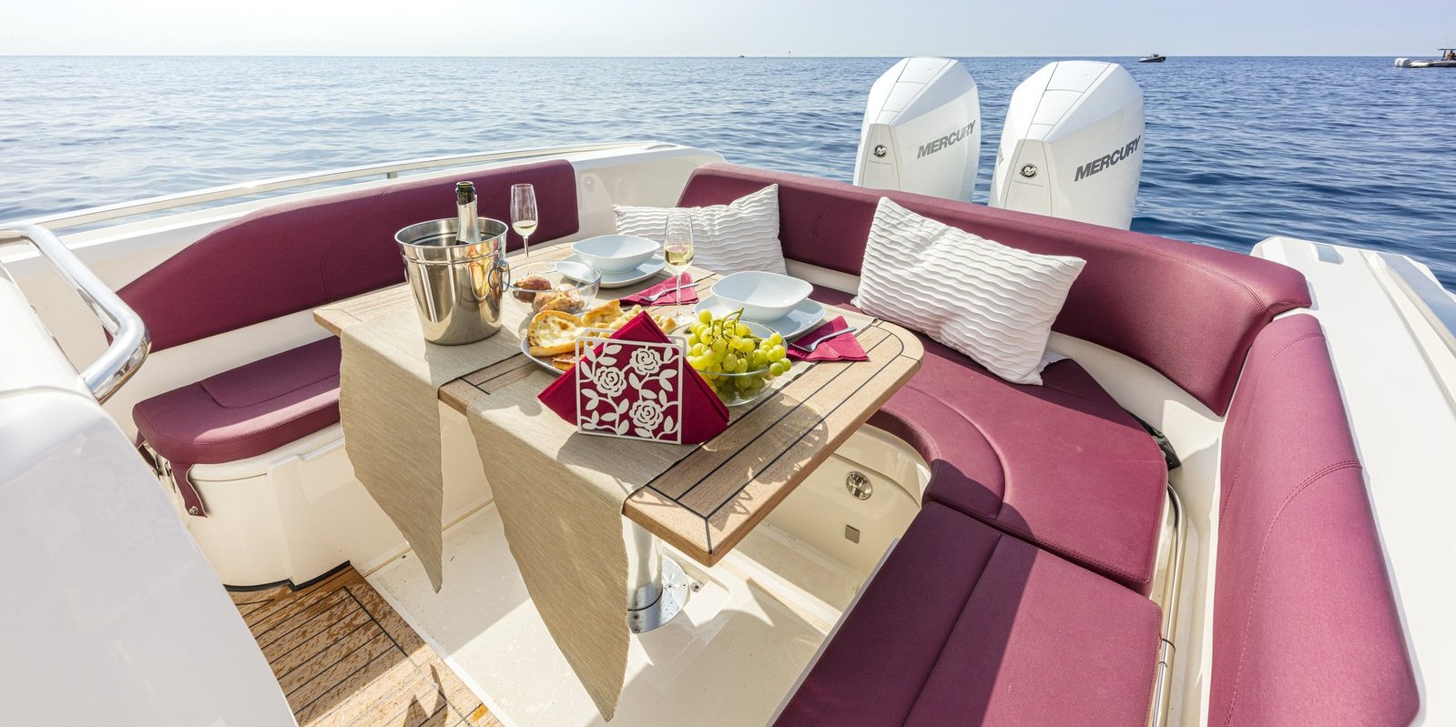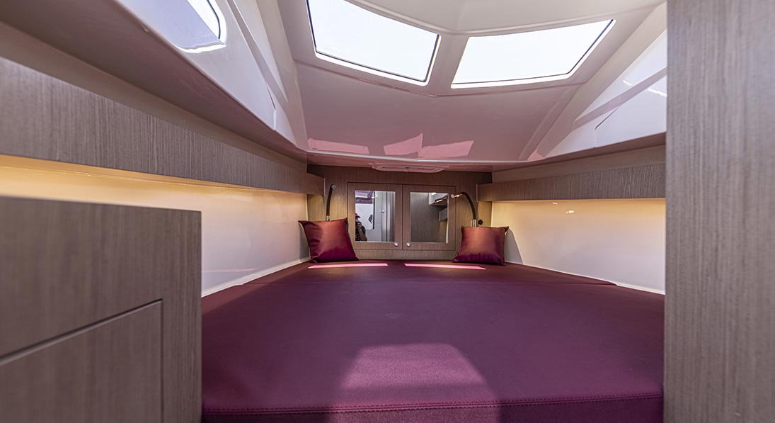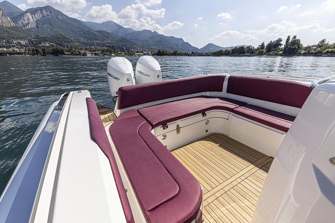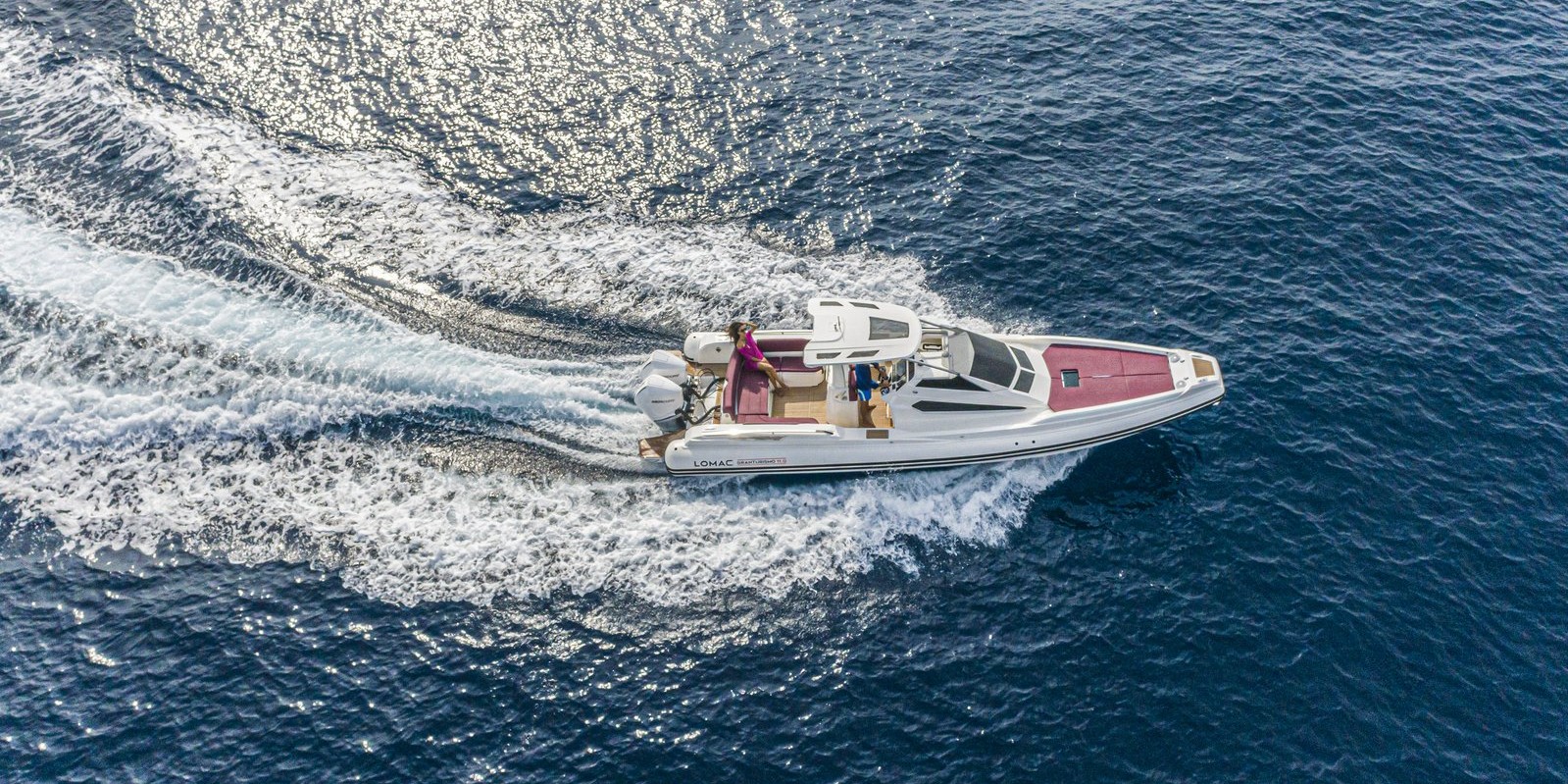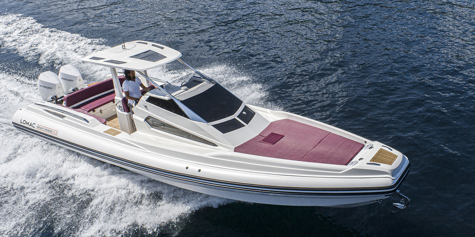 The sleek lines and performance you expect from a Lomac GranTurismo, with 30% more cabin space and large storage areas for short cruises.