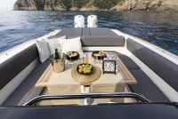 - electric windlass double control on console and bow, inox anchor kg. 10 and mt. 50 chain, table at the bow