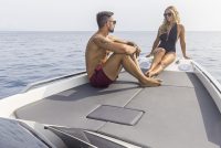 - bimini for bow sundeck with 2 carbon posts on T top and 2 posts on bow sundeck (black micro-perforated) and side canopy