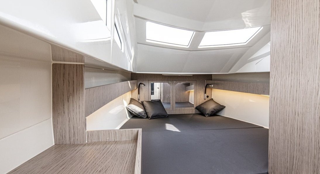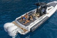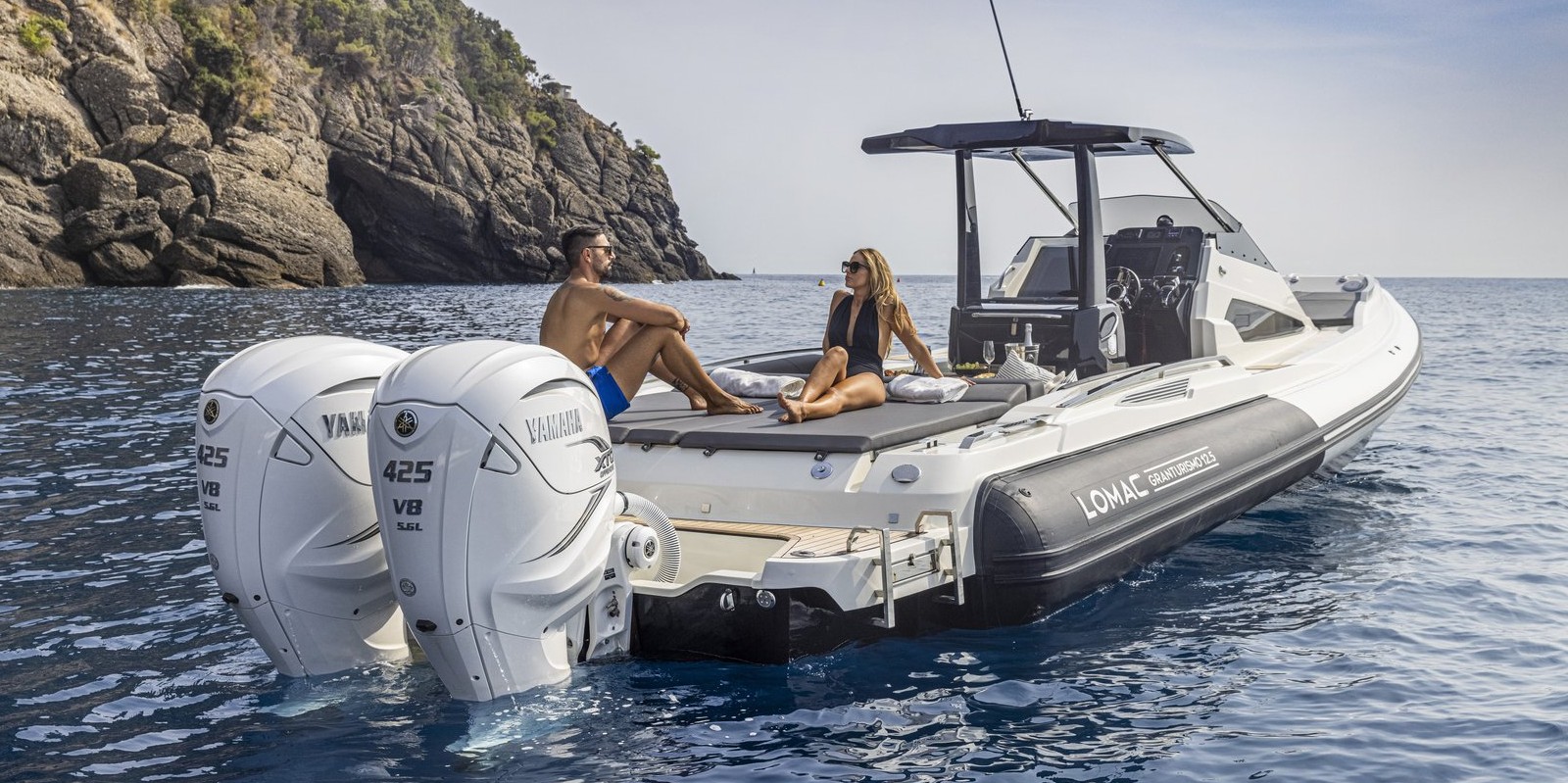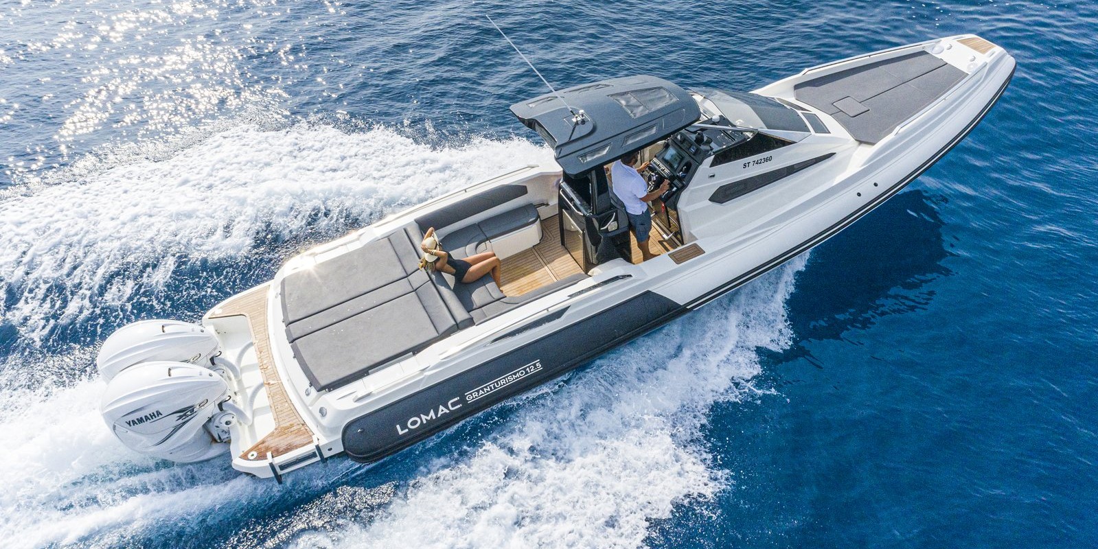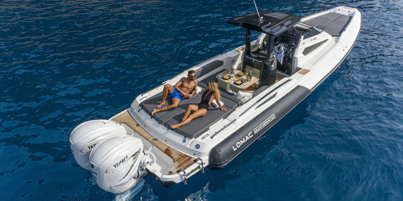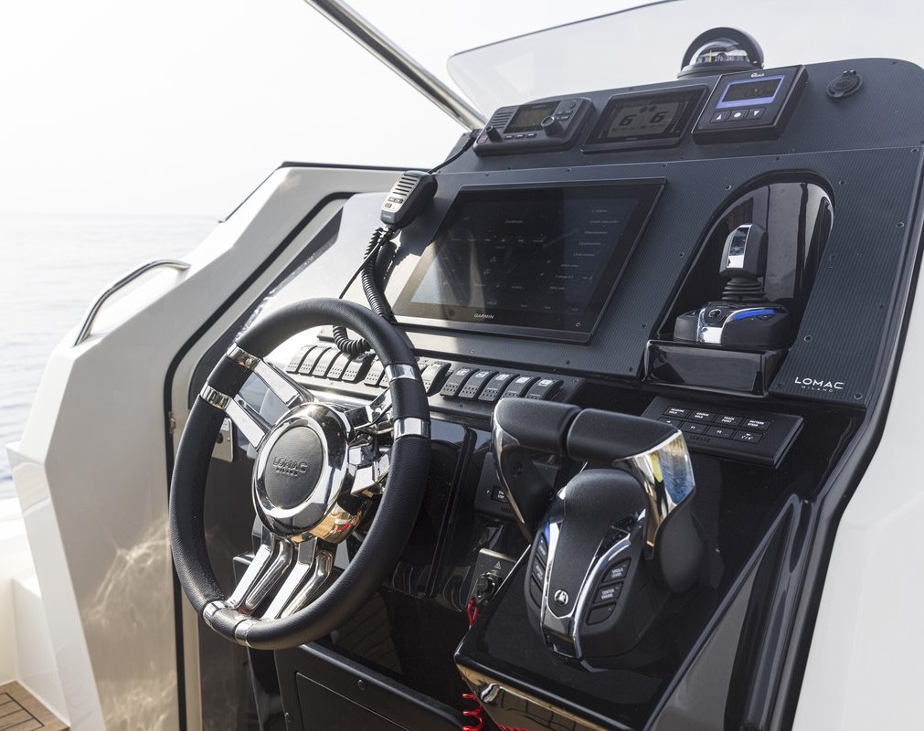 The sleek lines and performance you expect from a Lomac GranTurismo, with 30% more cabin space and large storage areas for short cruises.