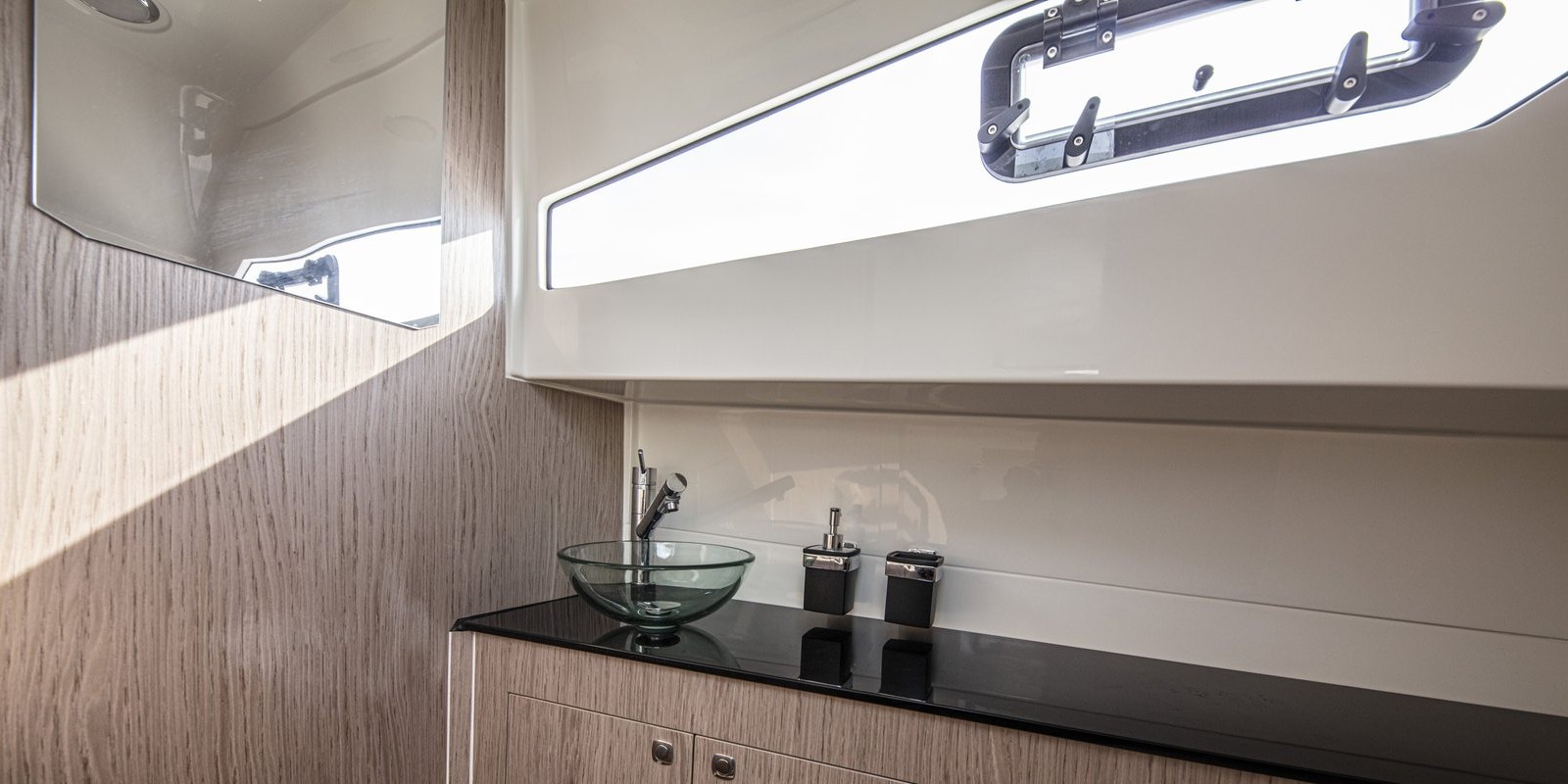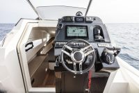 - double hydraulic steering system with 2 cylinder, inox wheel with hand-sewn sky, compass and horn