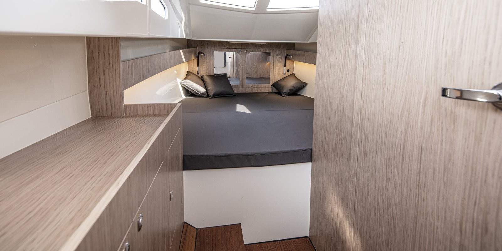 - cabin with 2 beds, oak furniture, 12 Volts socket and 4 switches panel