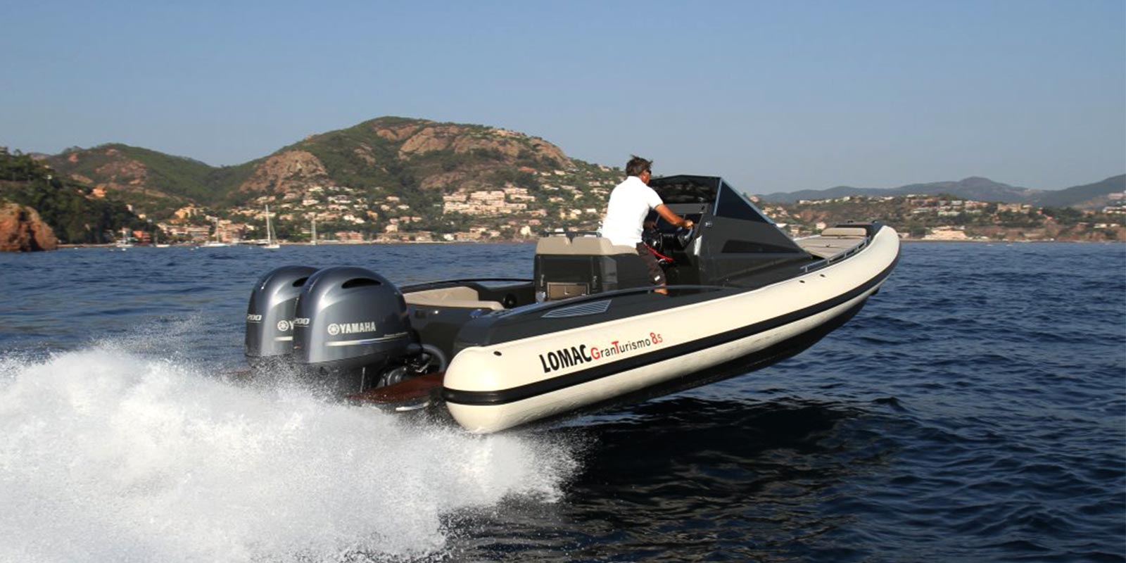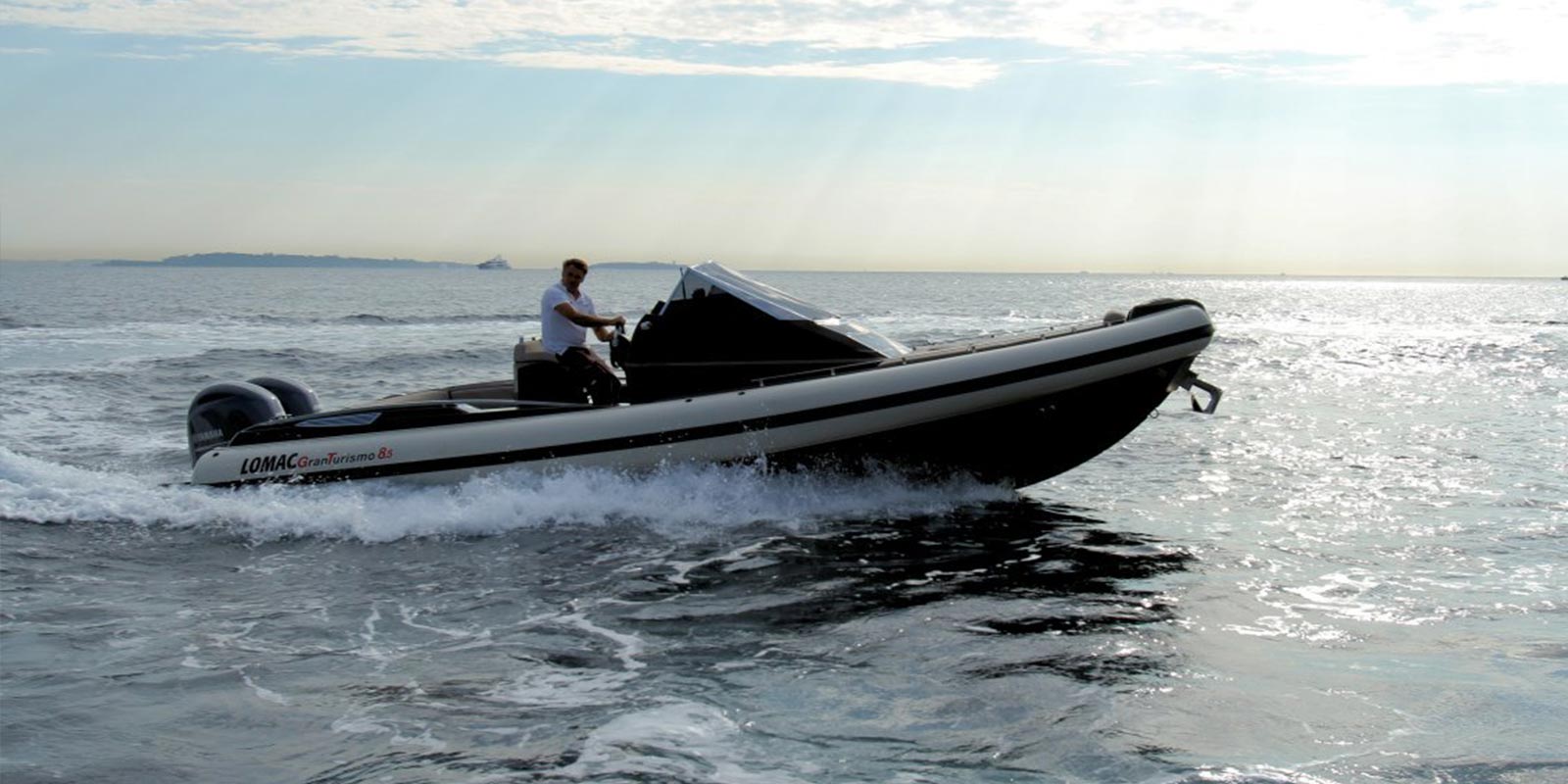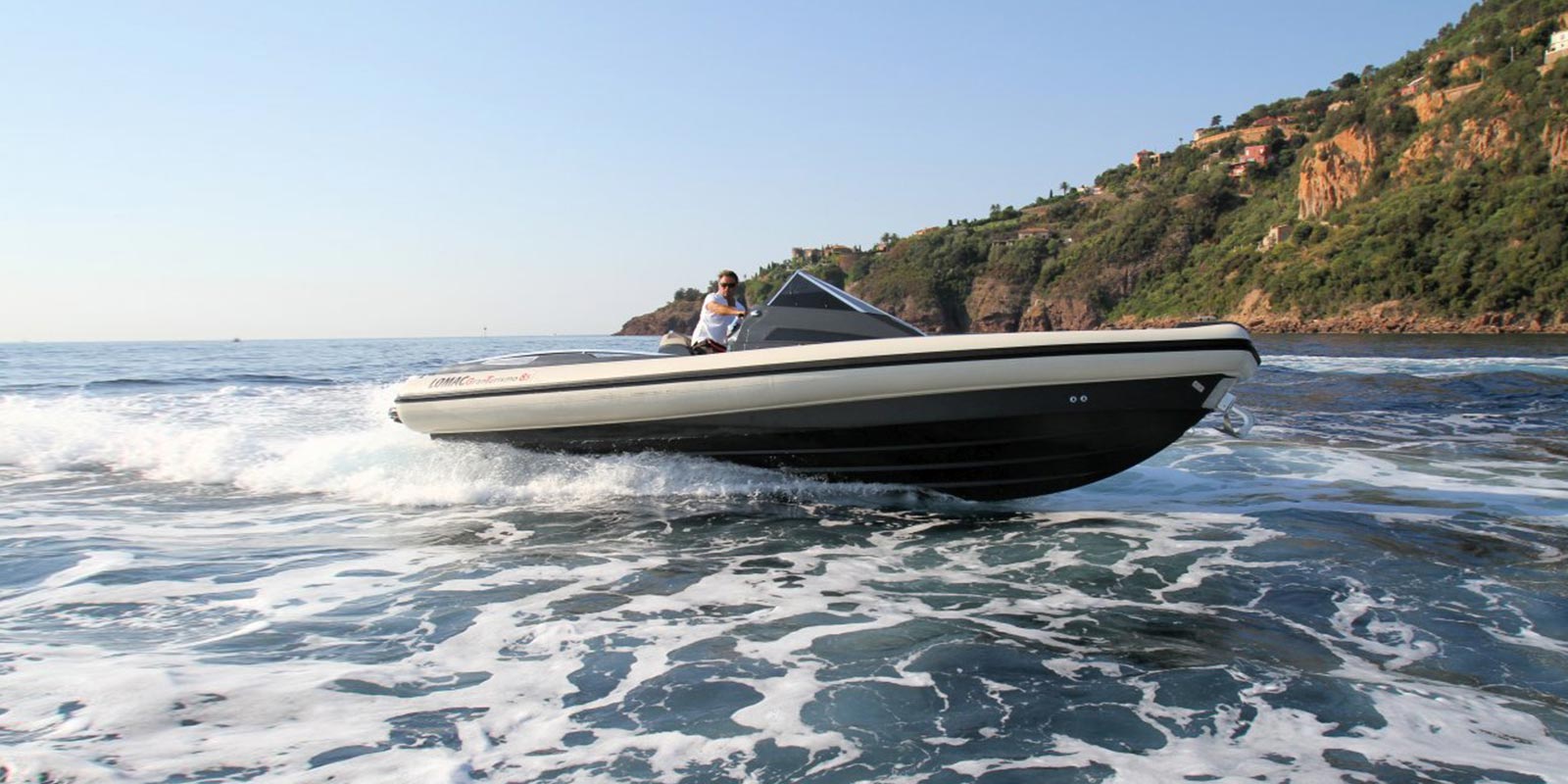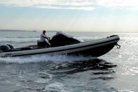 - steering console, windshield and stainless steel trim, sliding cabin door with lock, side windows, navigation lights
