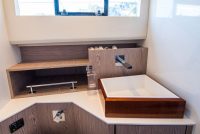 The large double bedroom at the bow has a separate bathroom with a double entrance, to ensure the owner’s privacy.