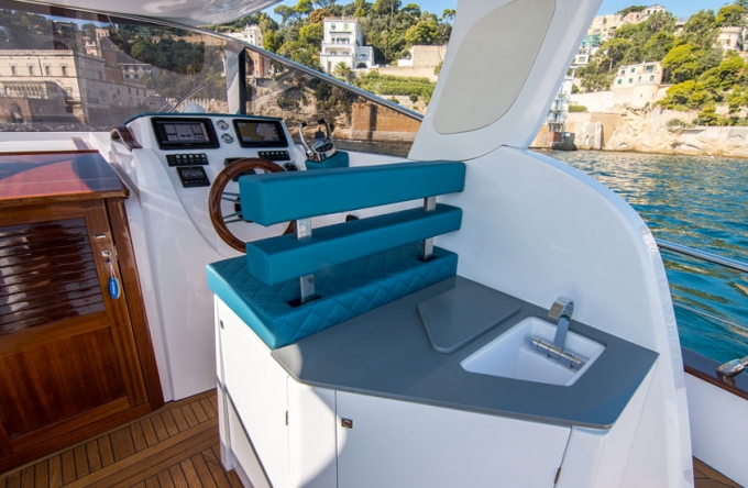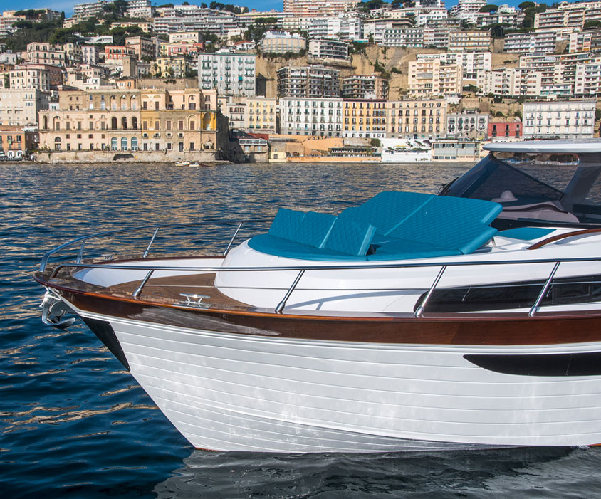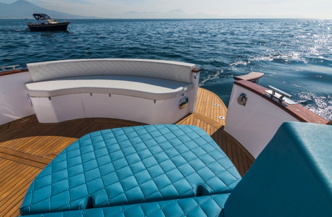 Like all Gozzi by Mimì, the hull is made with vacuum infusion to reduce its weight for a more solid product with less impact on the environment, since it allows the use of a less powerful engine.