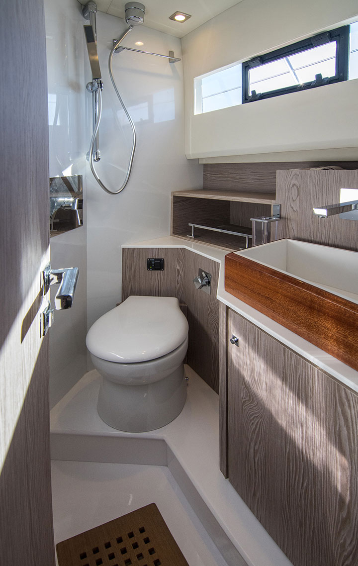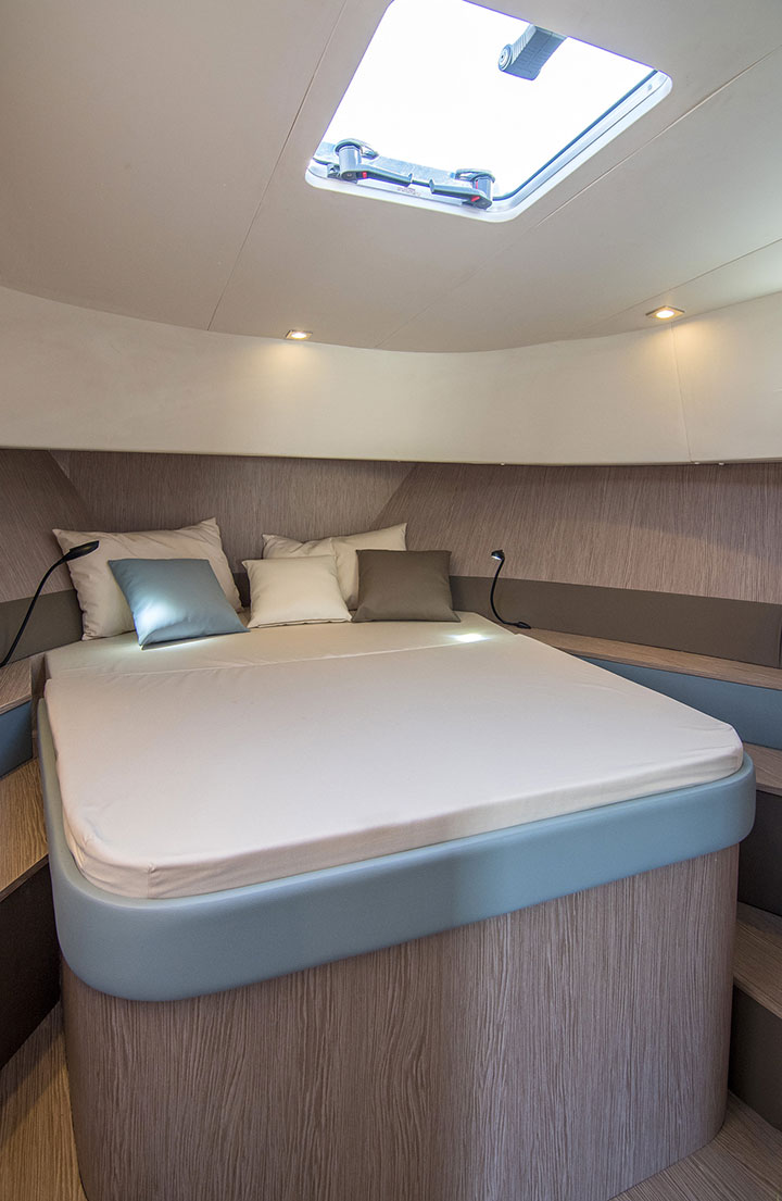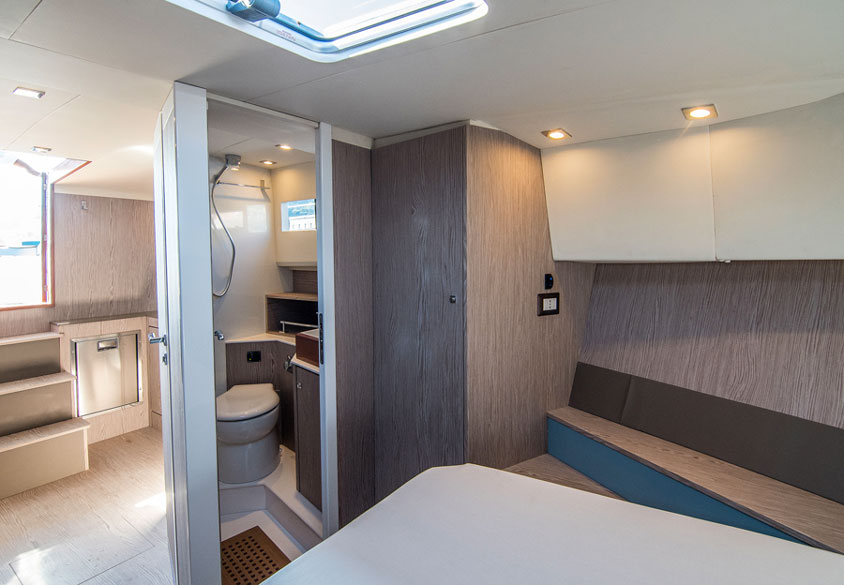 The large double bedroom at the bow has a separate bathroom with a double entrance, to ensure the owner’s privacy.
