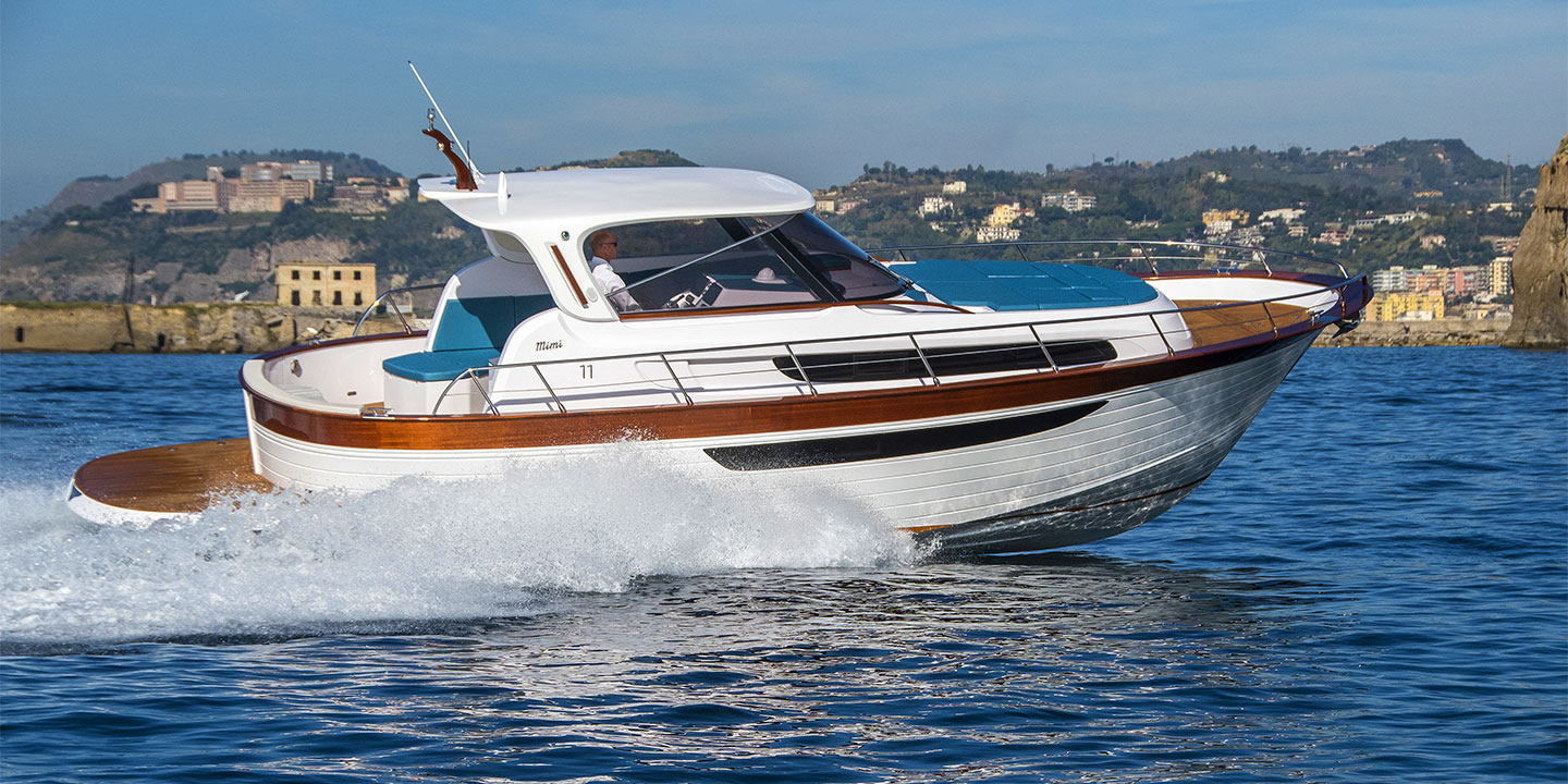 This beautiful and charming gozzo is the first of the series with an HT (hardtop) and its innovative design does not go unnoticed. The strength of Libeccio 11 is the internal division of the hull. In fact, it has 2 separate cabins, a double cabin and another one in the dinette, which, thanks to a retractable bulkhead system, becomes a second double bedroom.
