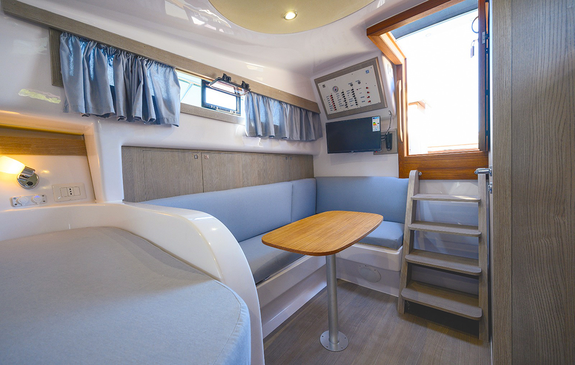 Libeccio 9.0 cabin is also available in the single-engine version.