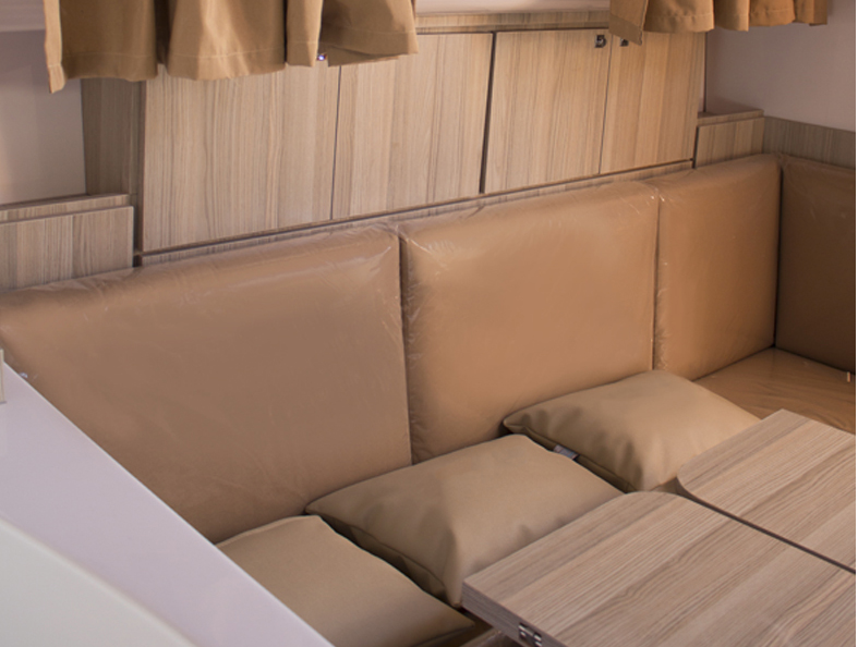 Libeccio 9.5 cabin is also available in the single-engine version.