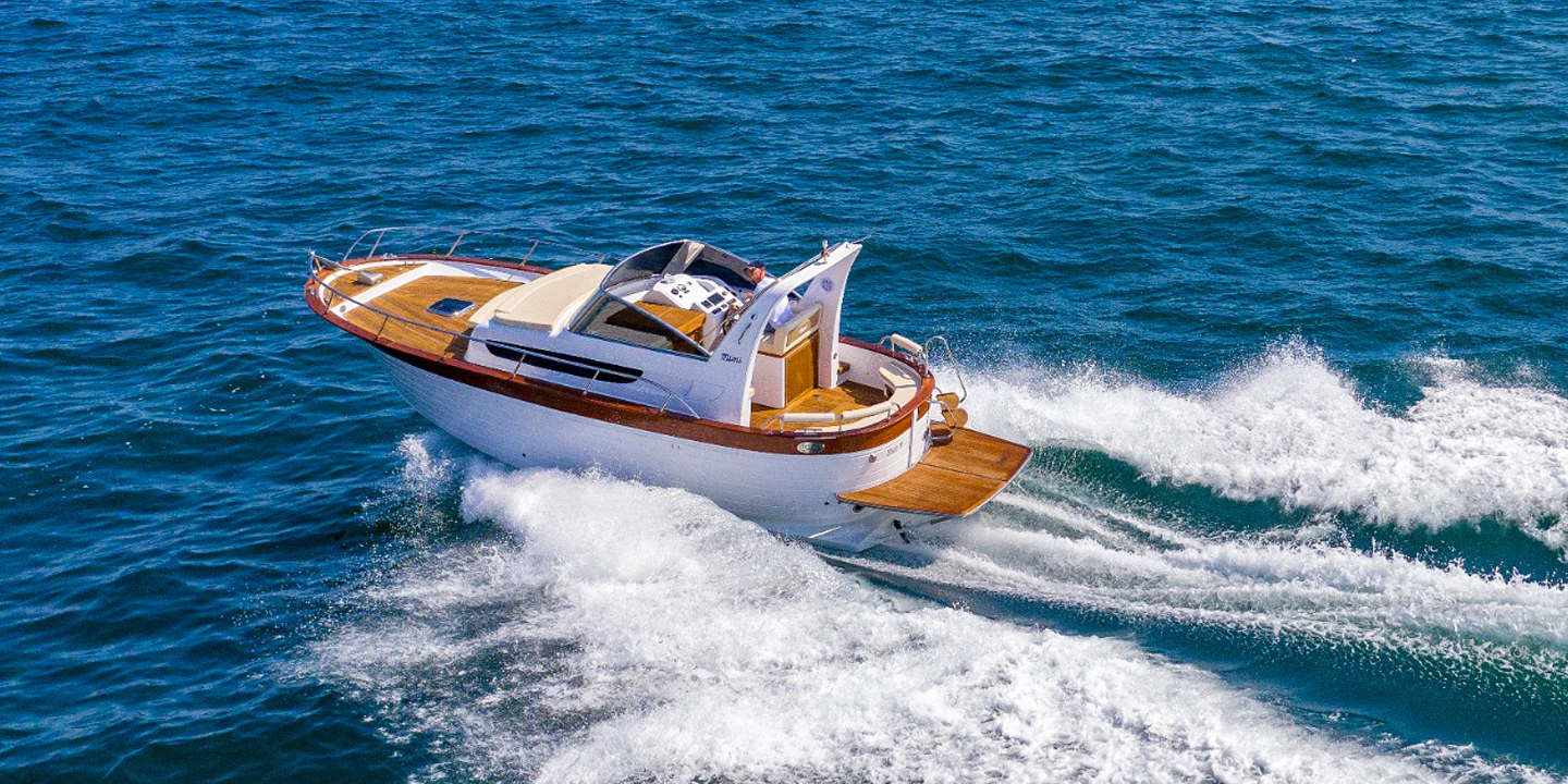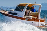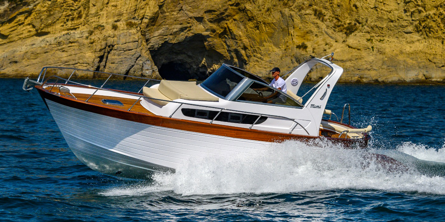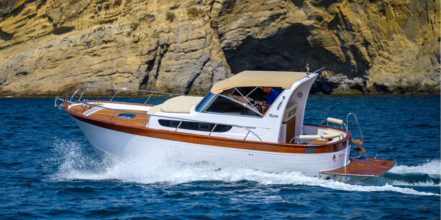 Like all Gozzi by Mimì, the hull is made with vacuum infusion to reduce its weight for a more solid product with less impact on the environment, since it allows the use of a less powerful engine.