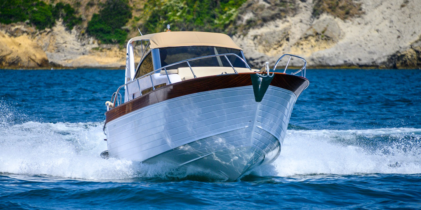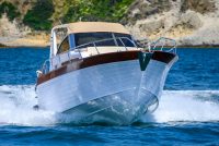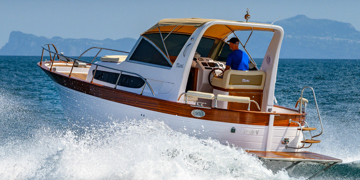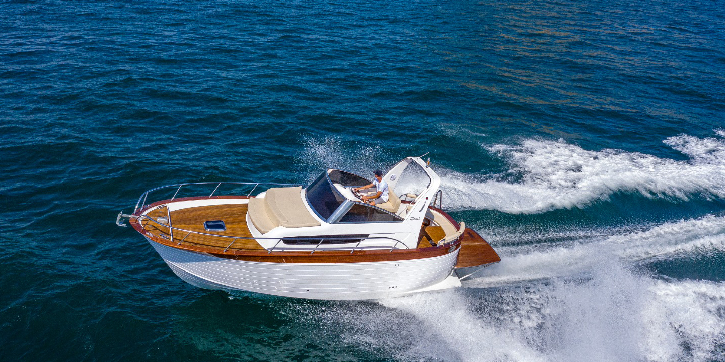 Like all Gozzi by Mimì, the hull is made with vacuum infusion to reduce its weight for a more solid product with less impact on the environment, since it allows the use of a less powerful engine.