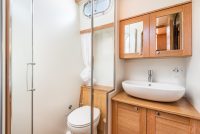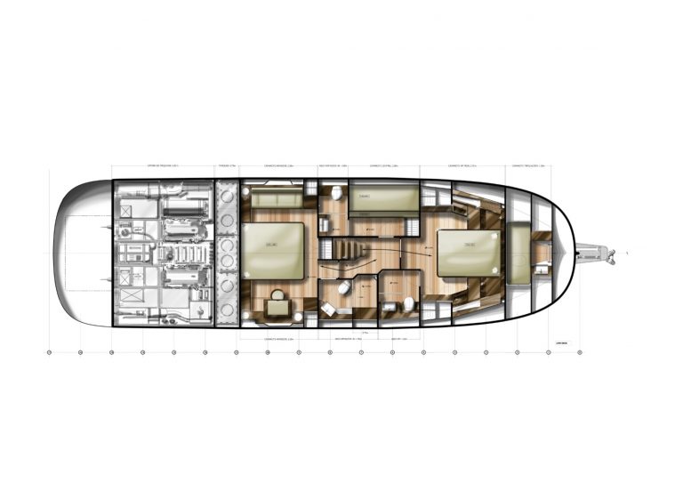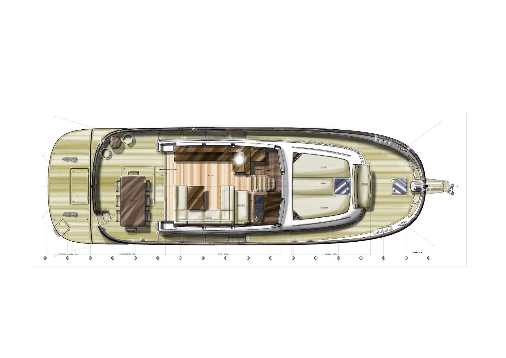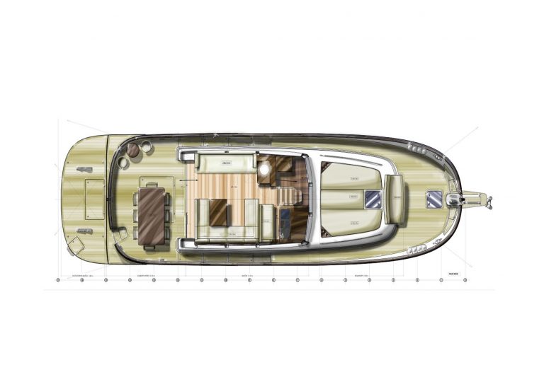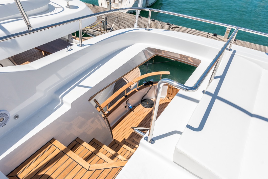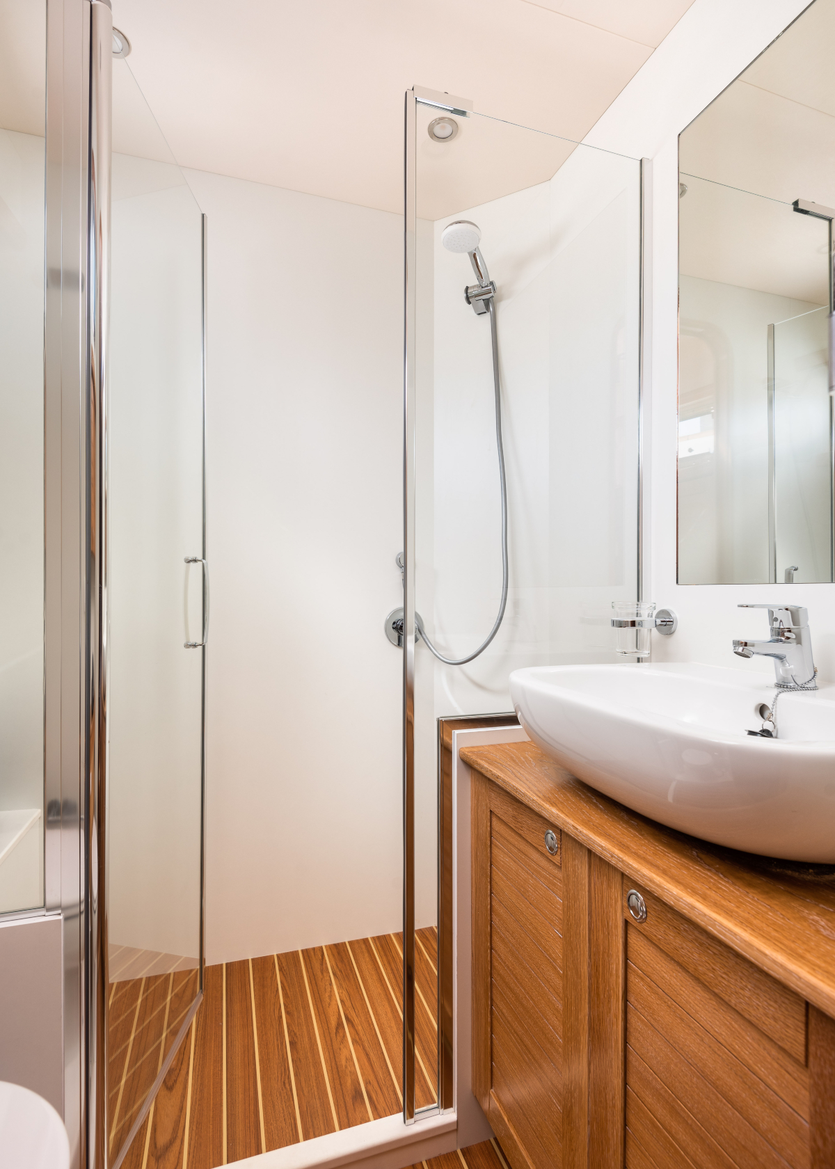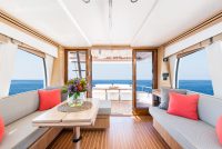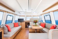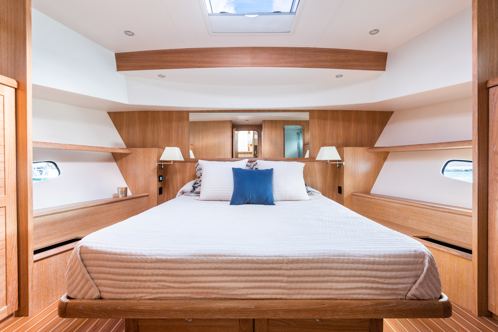 Equipped with sunbed, dinette, a complete helm and with ‘walk-around’ access to generous fore, aft-deck spaces and large cockpit, the 54 offers a generous array of exterior social areas.