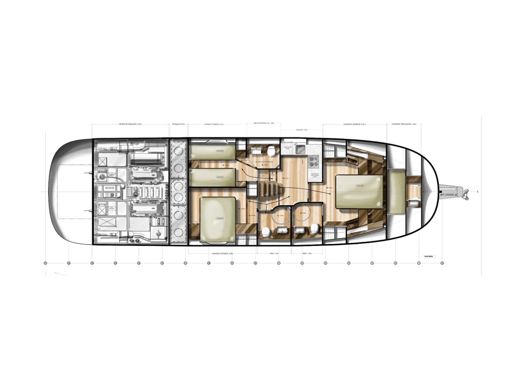 The Menorquín 54 Flybridge is a great cruiser of magnificent performance, with an excellent autonomy, which bets on comfort, manoeuvrability and elegance.