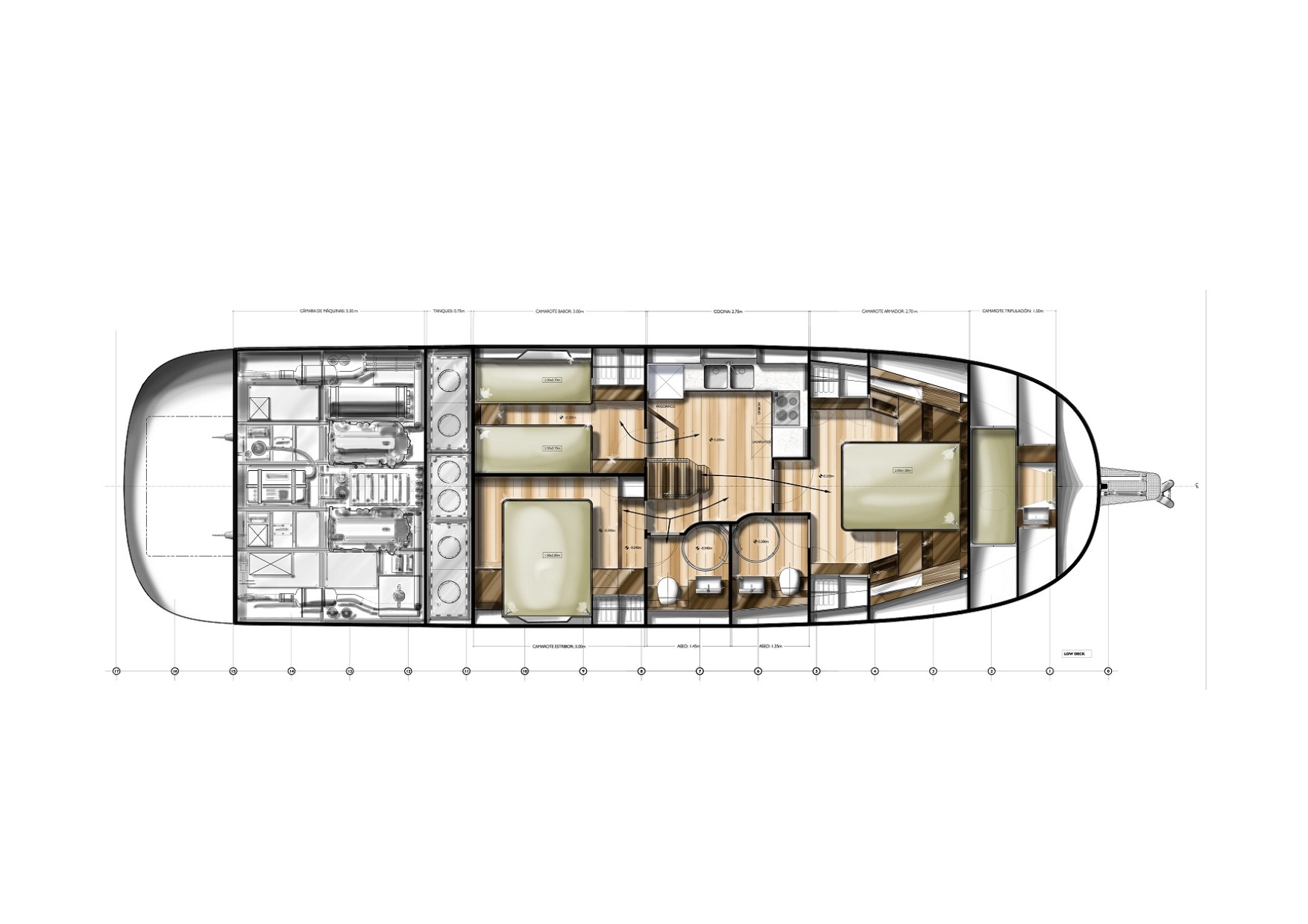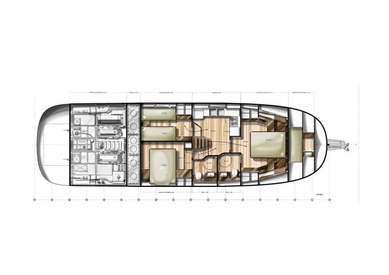The draught of only 1.3m will allow you to access bays and estuaries with ease. Furthermore, with ‘walk-around’ access to the generous fore, aft-deck spaces and the large cockpit, the 54 offers a generous array of exterior social areas.
