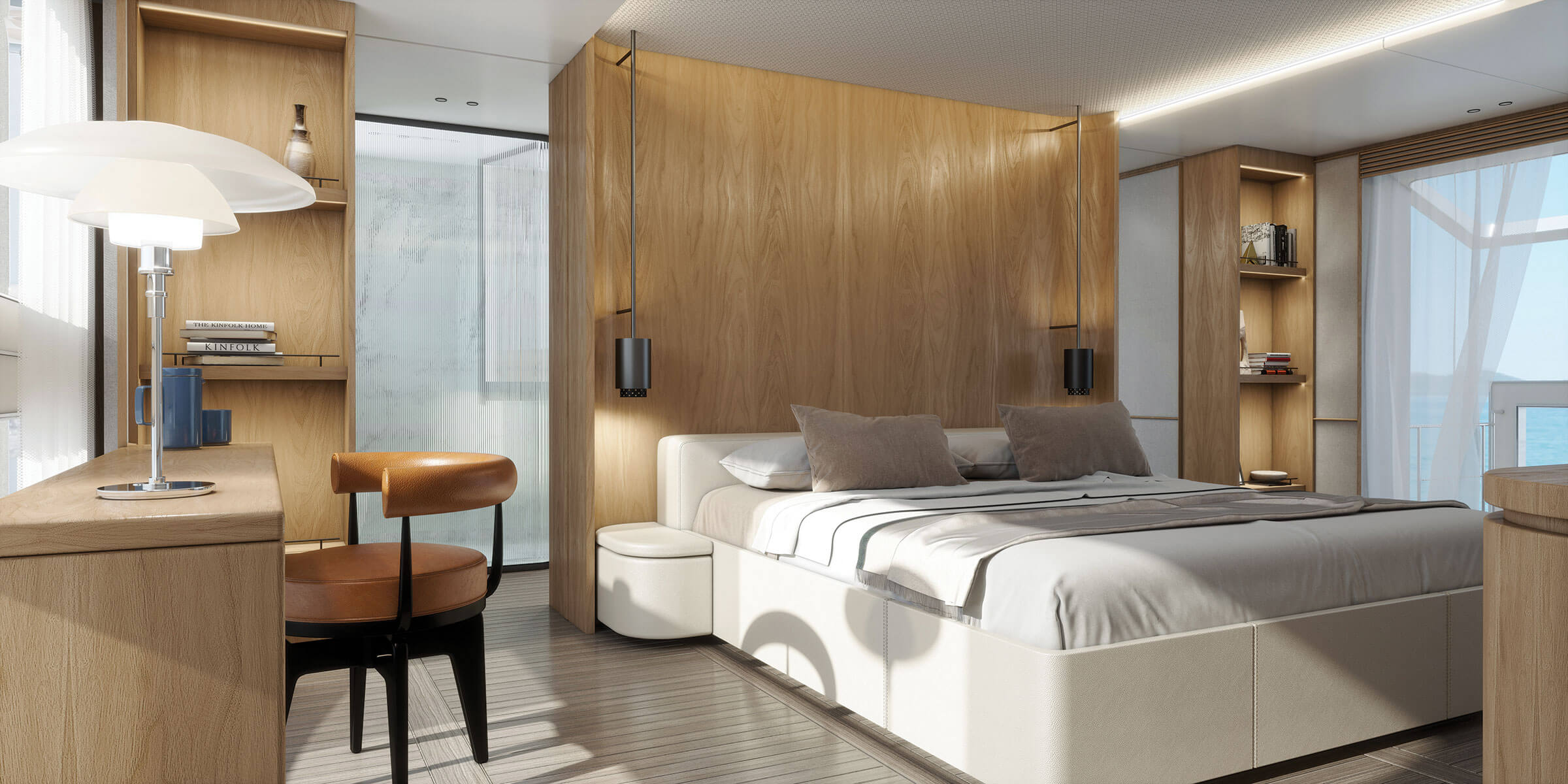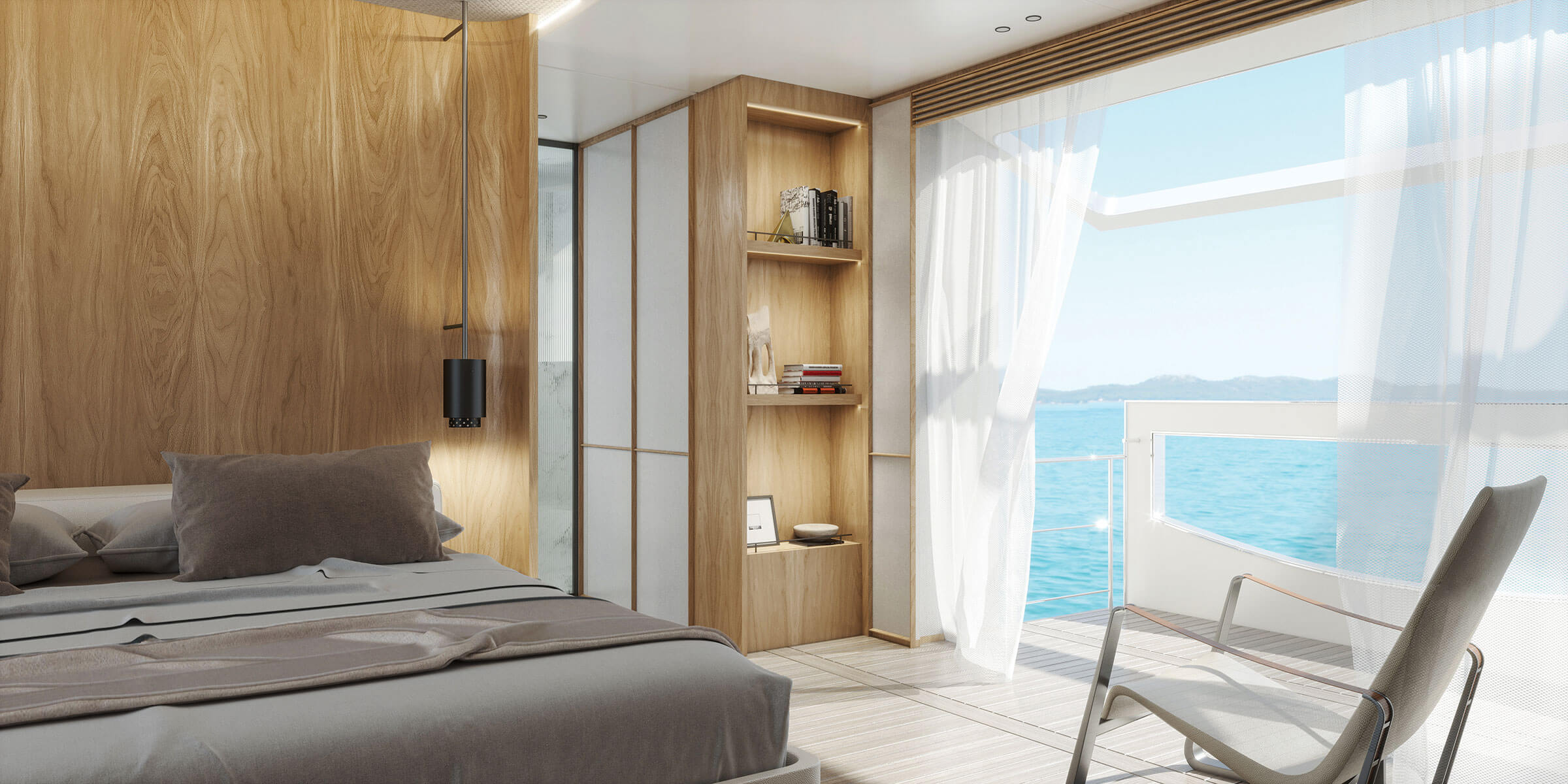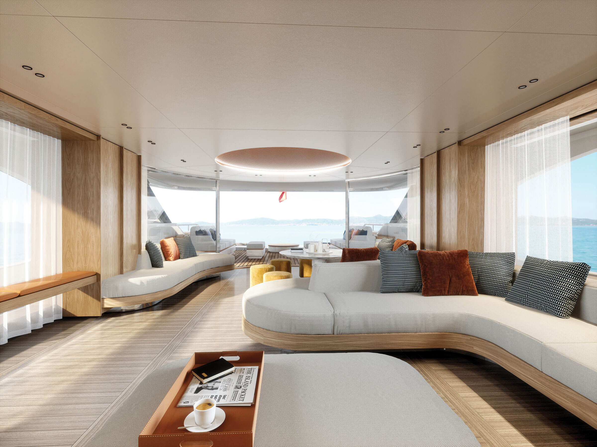 SOCIAL DESIGN WEAVES THE ENTIRE DECK INTO A VAST CONVIVIAL OASIS, FROM THE MAIN SALOON TO THE SEA.