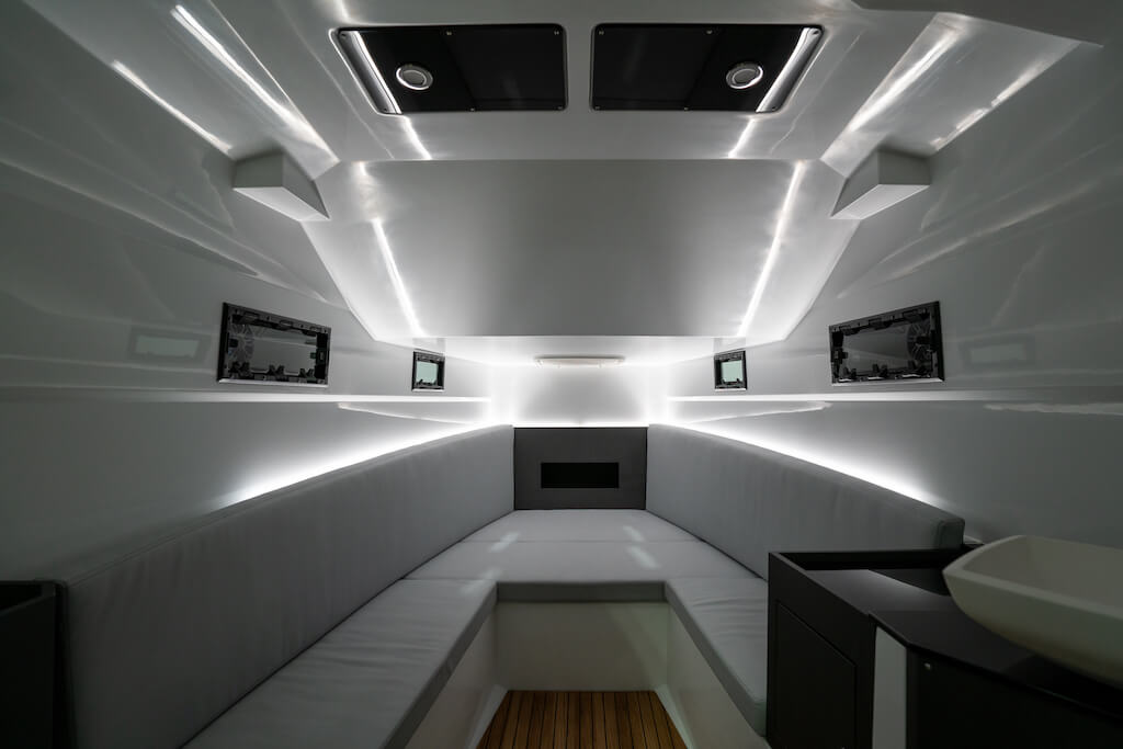 Born from a process started with PIRELLI 1400, the PIRELLI 42 design combines personality and character. The walkaround layout privileges the open spaces, from the surprising living area to the bow sofa.