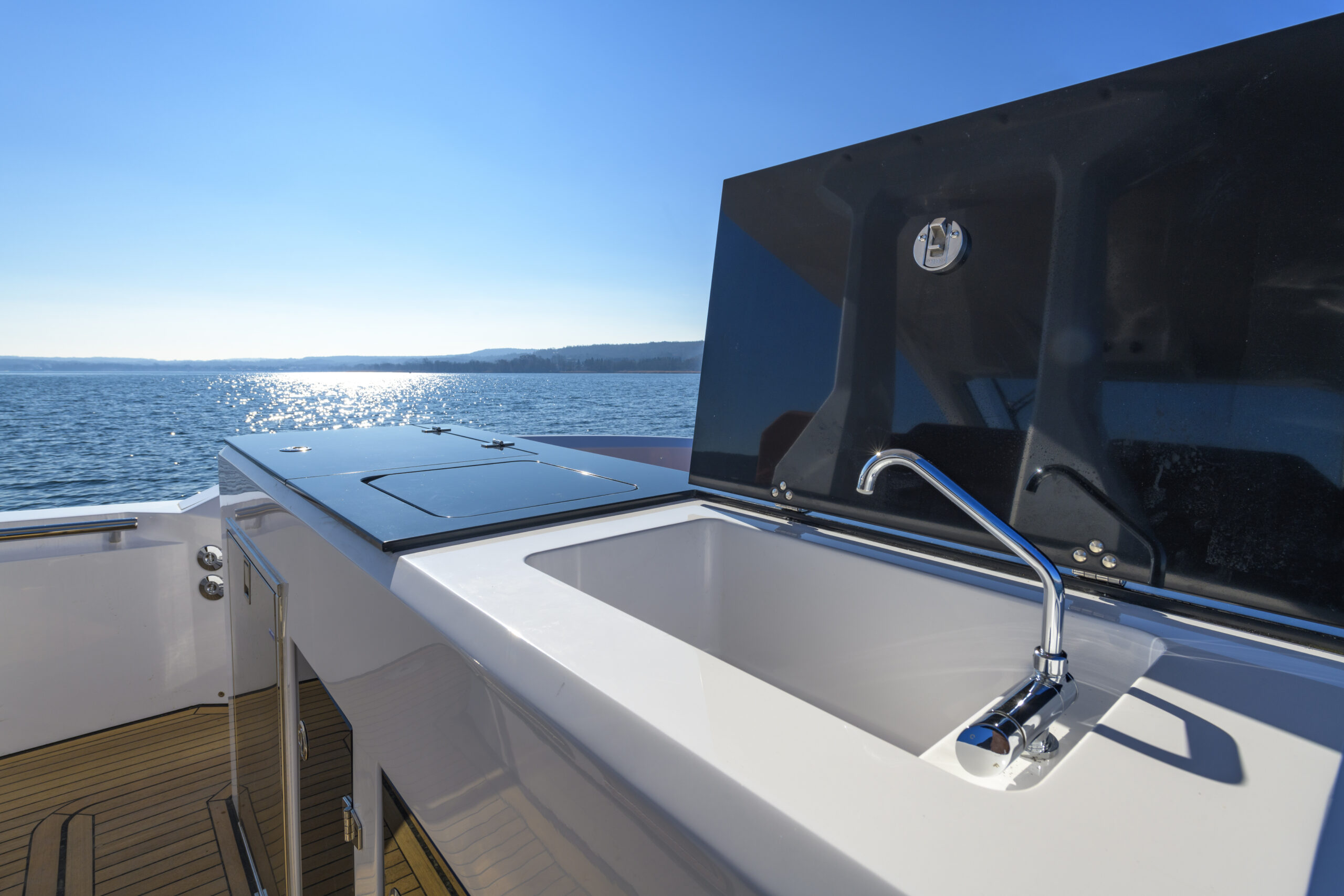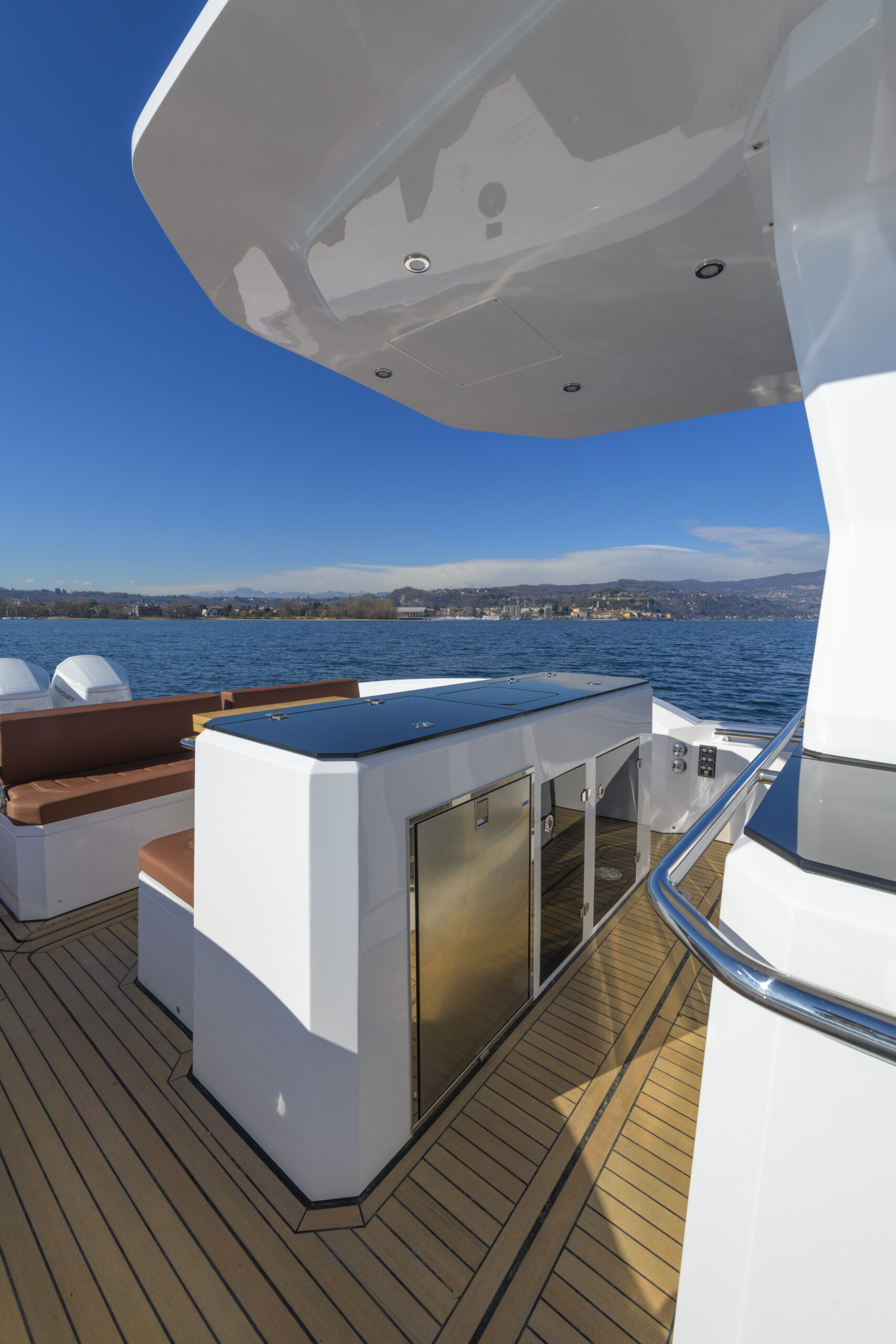 The PIRELLI 50 has been designed in every detail to ensure a comfortable and relaxed life on board. The wide bow sunbathing area offers comfort and safety for those who want to enjoy the sea in its entirety, while the cockpit is equipped according to the requirements of the owner and allows to accommodate many guests in complete comfort.