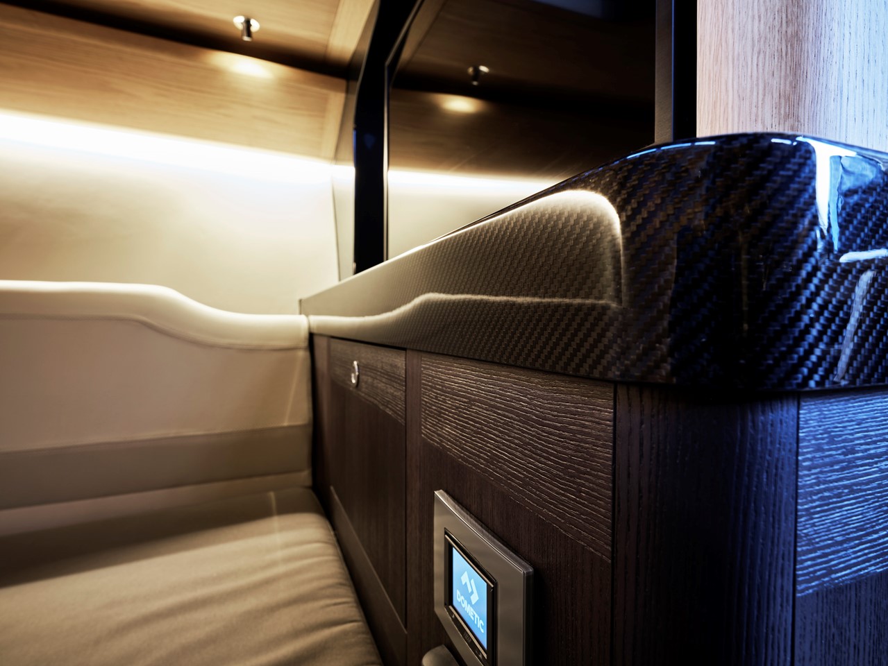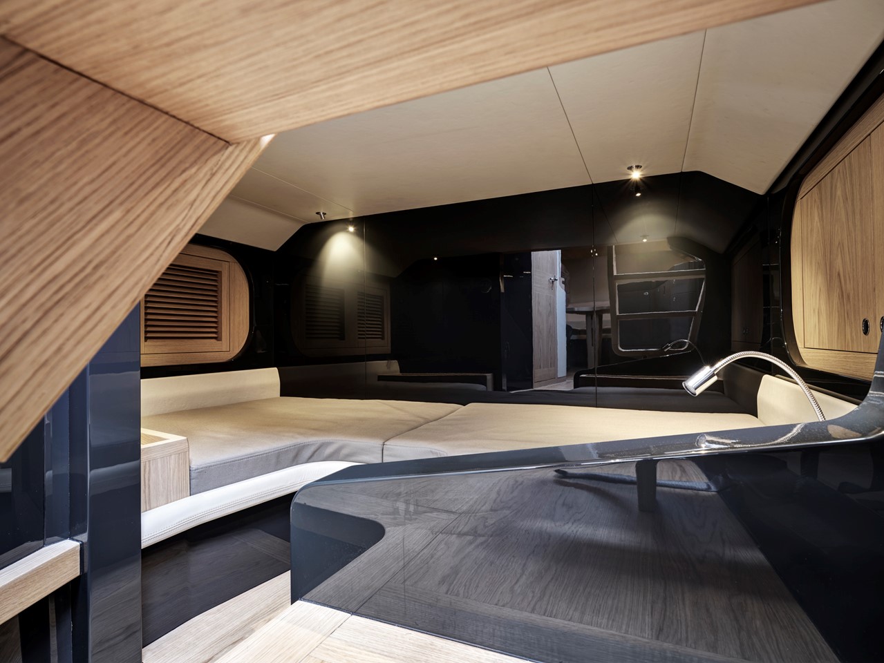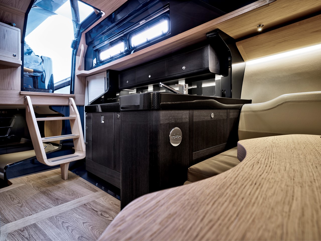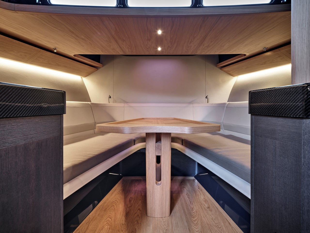 Interior design is created by LIAIGRE. In the yachting industry, the LIAIGRE signature is synonymous with refined materials, assemblies and finishes.