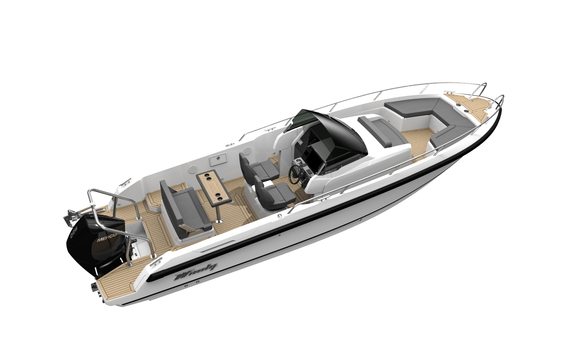 The clear design of the SR28CC gives an impressive appearance that radiates both luxury and sportiness. With her characteristic well-tuned proportions and elegant lines, Windy has created an aesthetic and spacious 28 ft. boat with true premium performance.