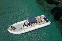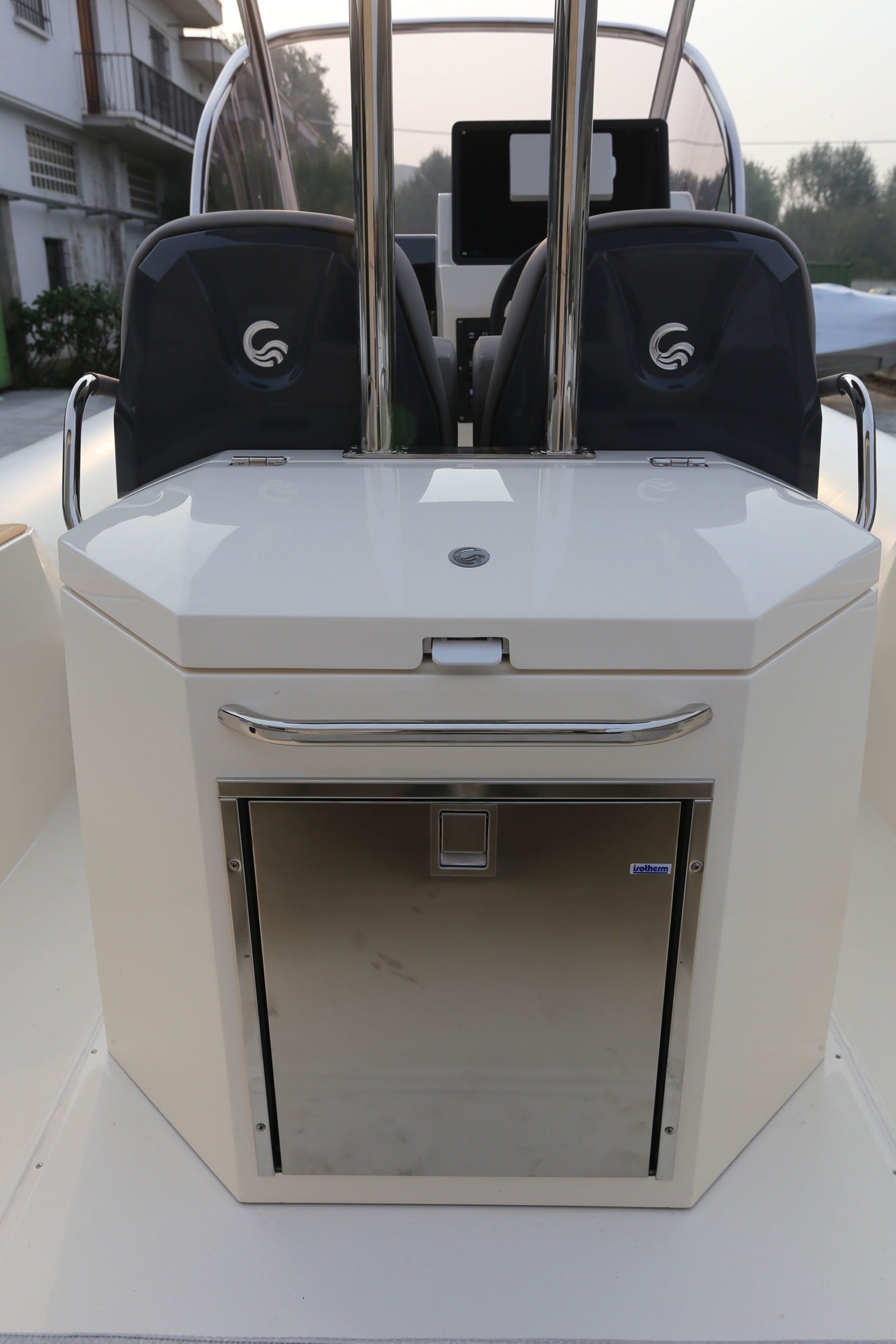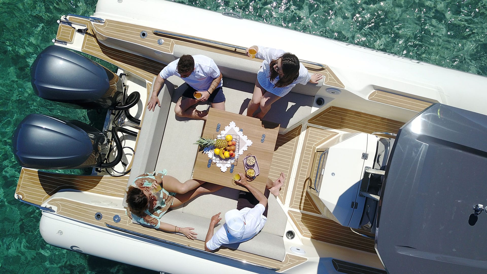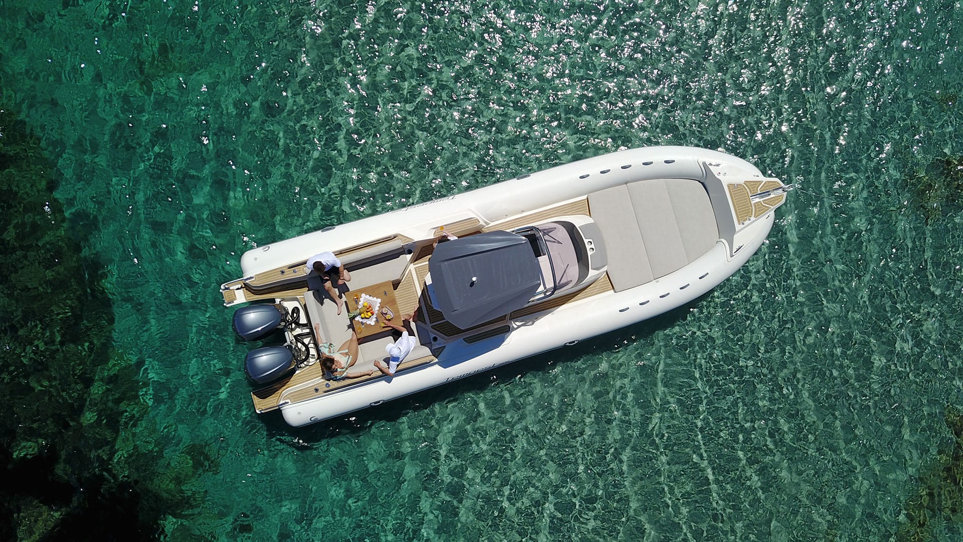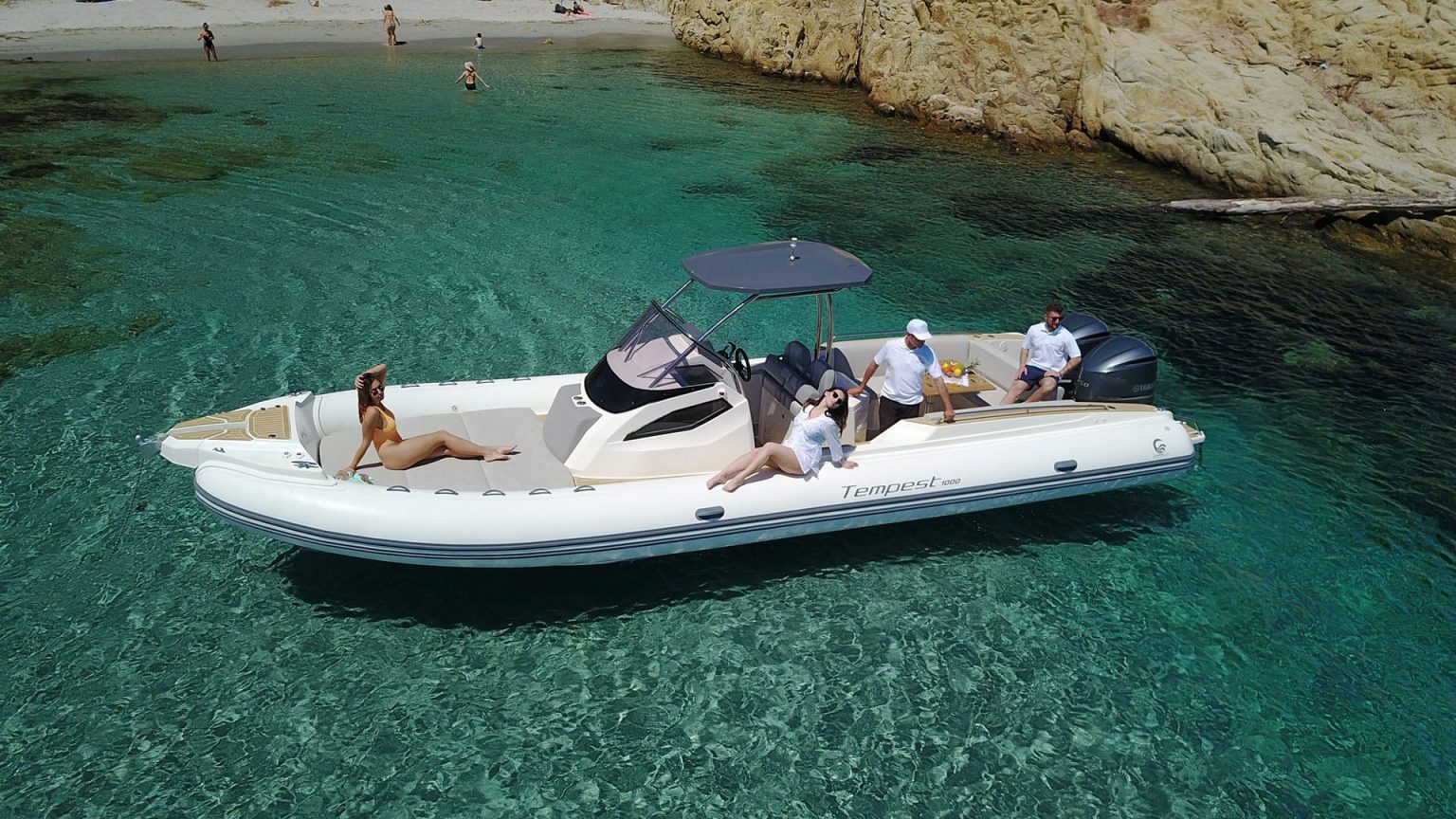 TEMPEST 1000 OPEN, has a dynamic and responsive nature. It’s a livable, comfy and safe unit. Sleek and well designed deck lines, empowered by the OPT hard top, fully integrated and functional. The ultimate space to enjoy unforgettable moment with family and friends is the “U” shaped stern bench, matched with the central teak table and the fridge installed in the driver bench. The double steering seats assure a comfy boating experience.Perfect both for long journeys and daily cruises.