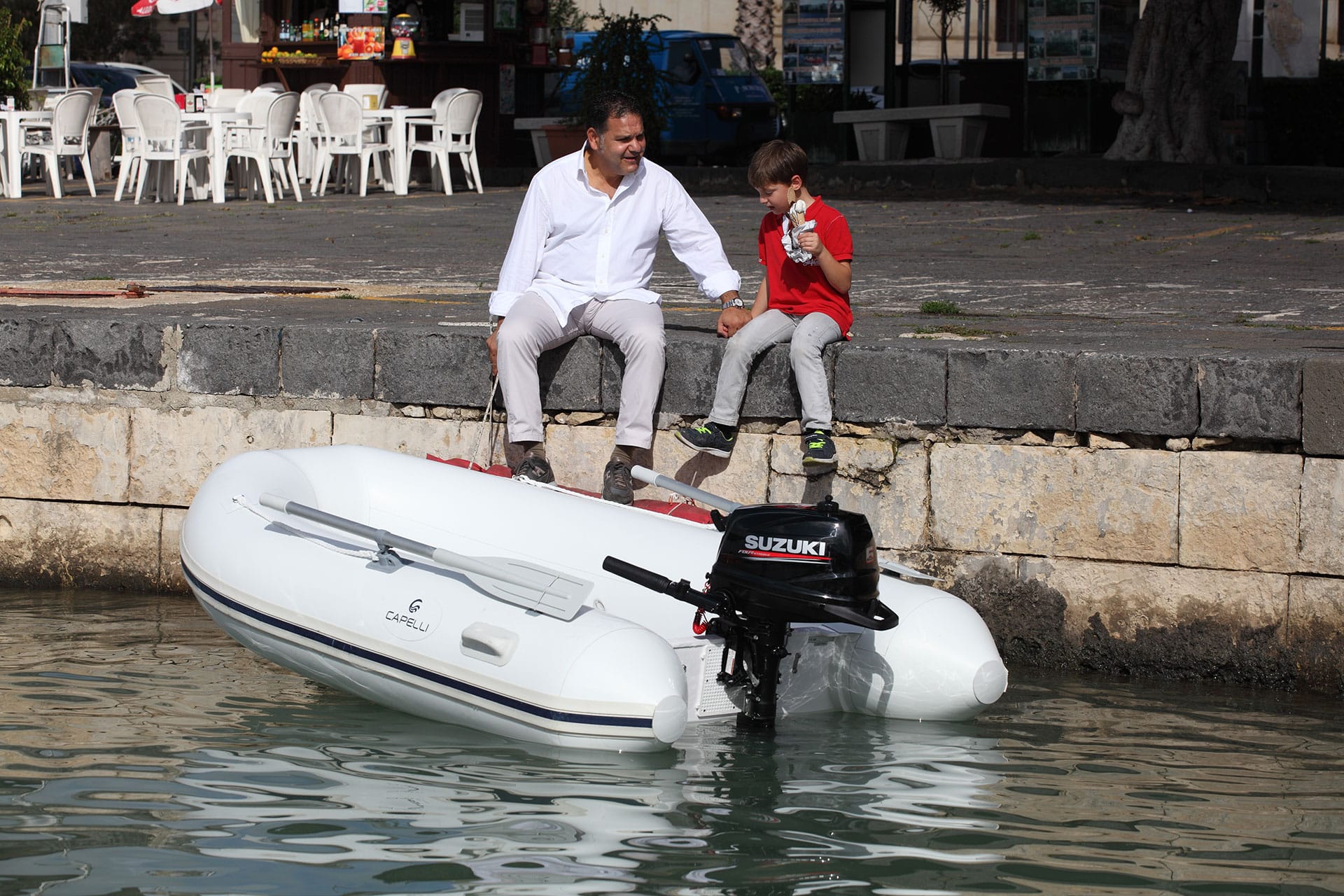 A handy and quality 2,75 mt tender unit. Tube is made by neoprene hypalon, hull and deck by fiberglass It can be enriched by adding a wood bench and the boat storage cover. The max engine power is 8 HP, max 4 people can be boarded.