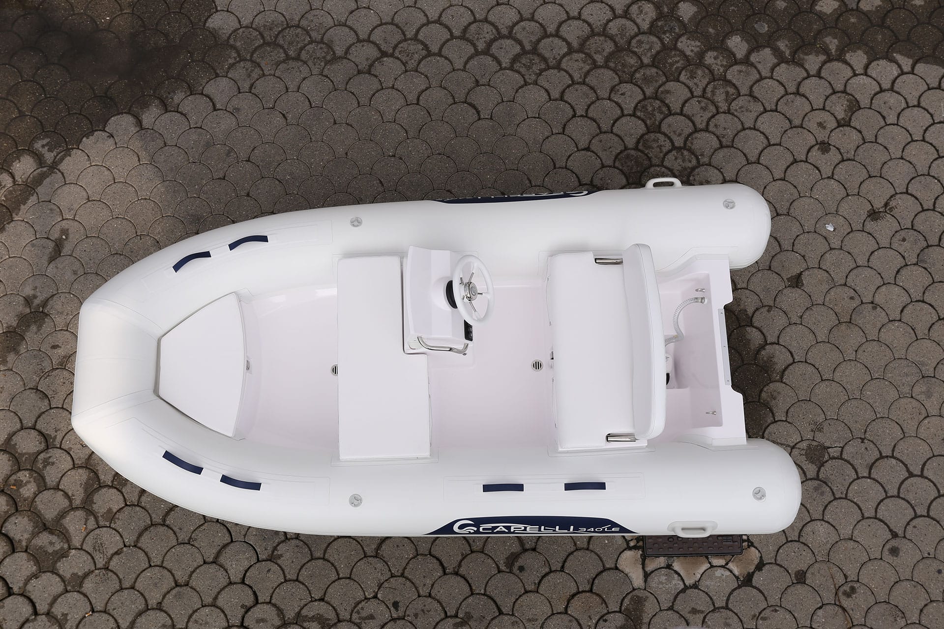 The lightest version of TEMPEST 340 top. Convenient and easy-handling without forgetting comfort and high quality features by Capelli. Amongs STD equpiment: steering console, big front cushion, automatic bilge pump. In the OPT list: ladder and boat cover.