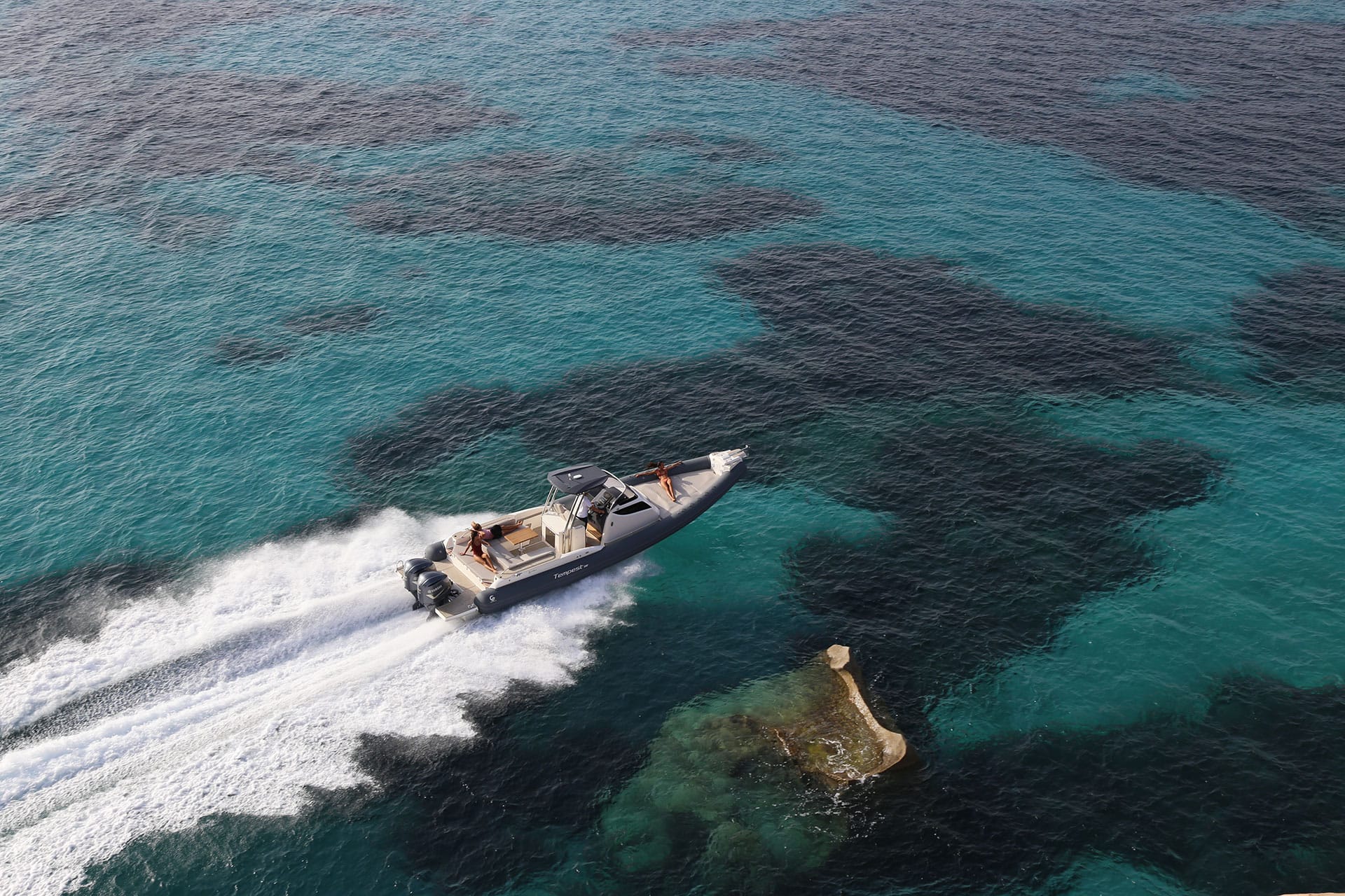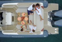 A luxury Maxirib with relax area at stern and wide solarium at front. A comfy open space with private toilet is hidden underdeck. Sleek, iconic profile and stylish design.