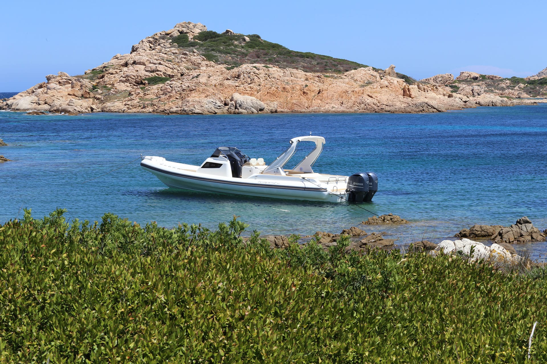 - T-Top bimini with 2 carbon pylons