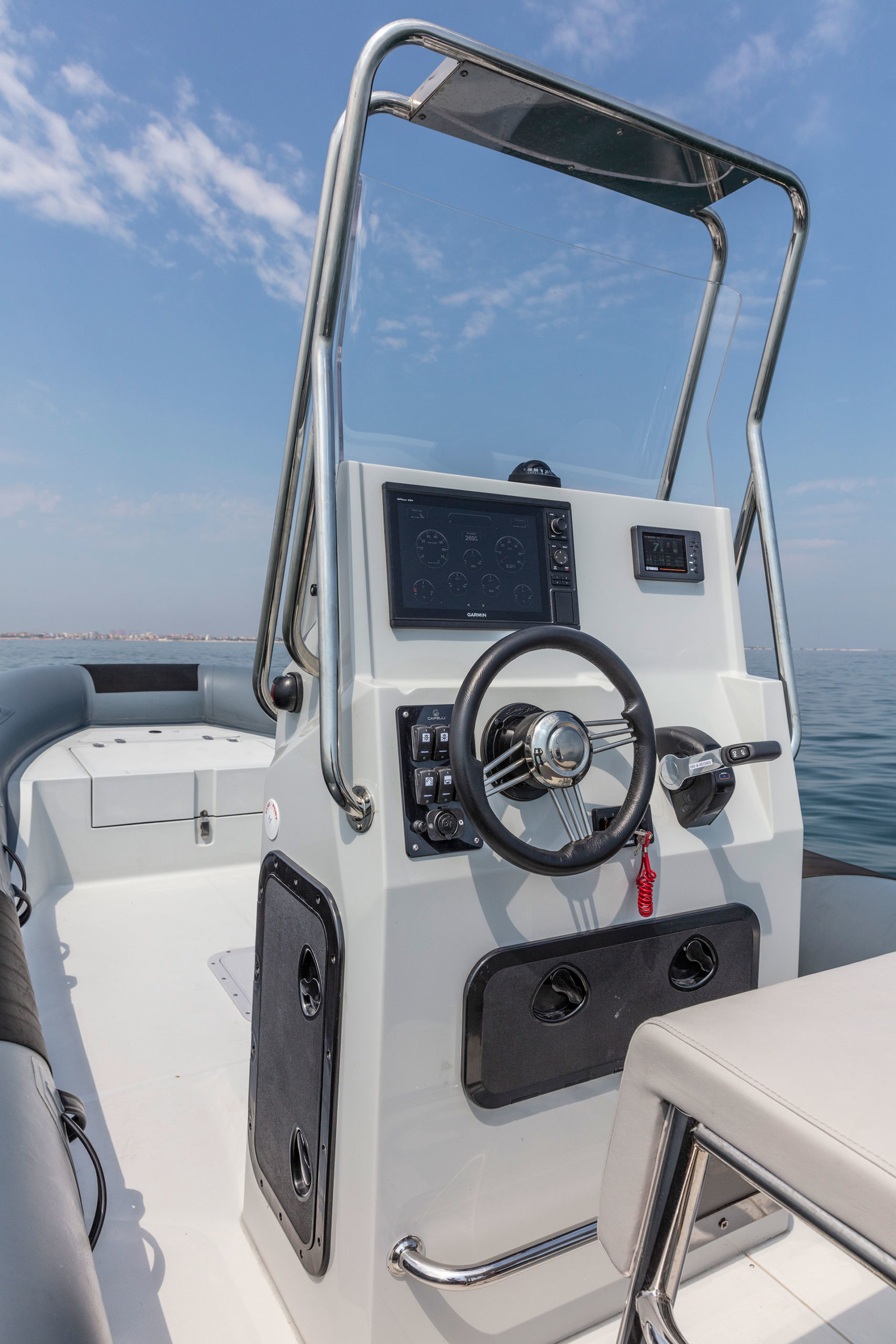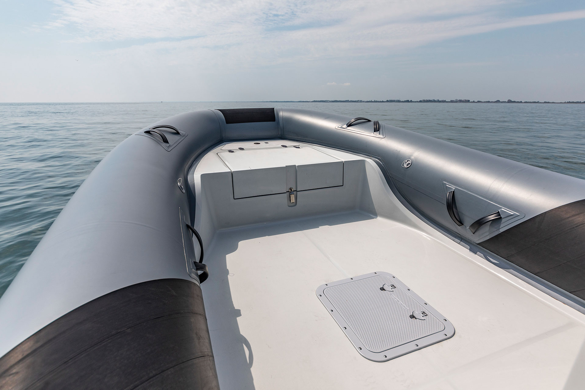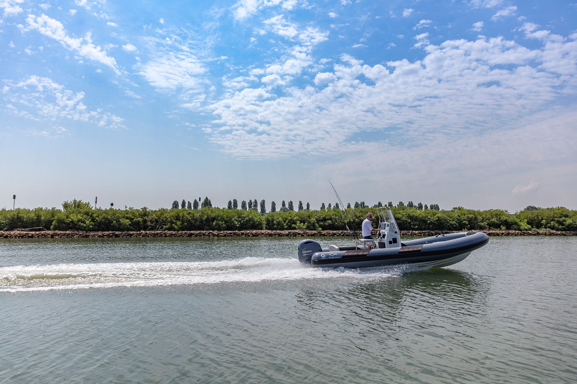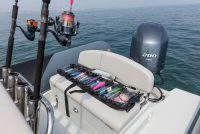 This new unit has the same hull and deck of Tempest 700 Work, adapted in their layout in order to maximize the positioning of new elements studied for fishermen exigencies. Console and leaning post have a brand new concept, towards stern there are 4 rod holders with handle. The live-well box (OPT) is under deck, in the bow area. It has a capacity of approx 80 lt.