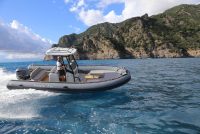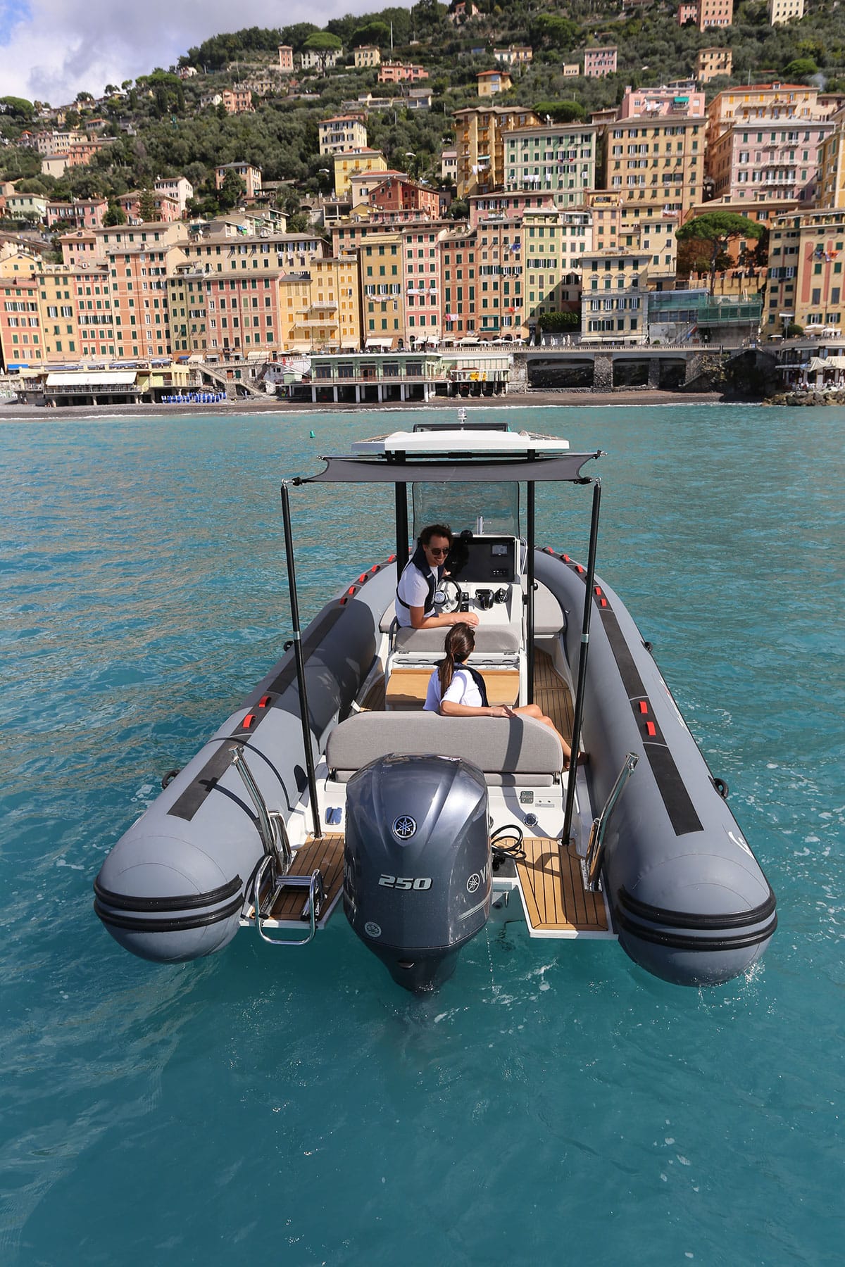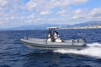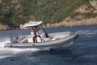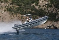 The SPORT version look presents a high effect livery: light grey GRP, tube in military grey with detailed red inserts (logo, handles, stitichings). Included in the std equipment: seastar hydraulic steering, fuel tank lt 355, ladder, USB charger.