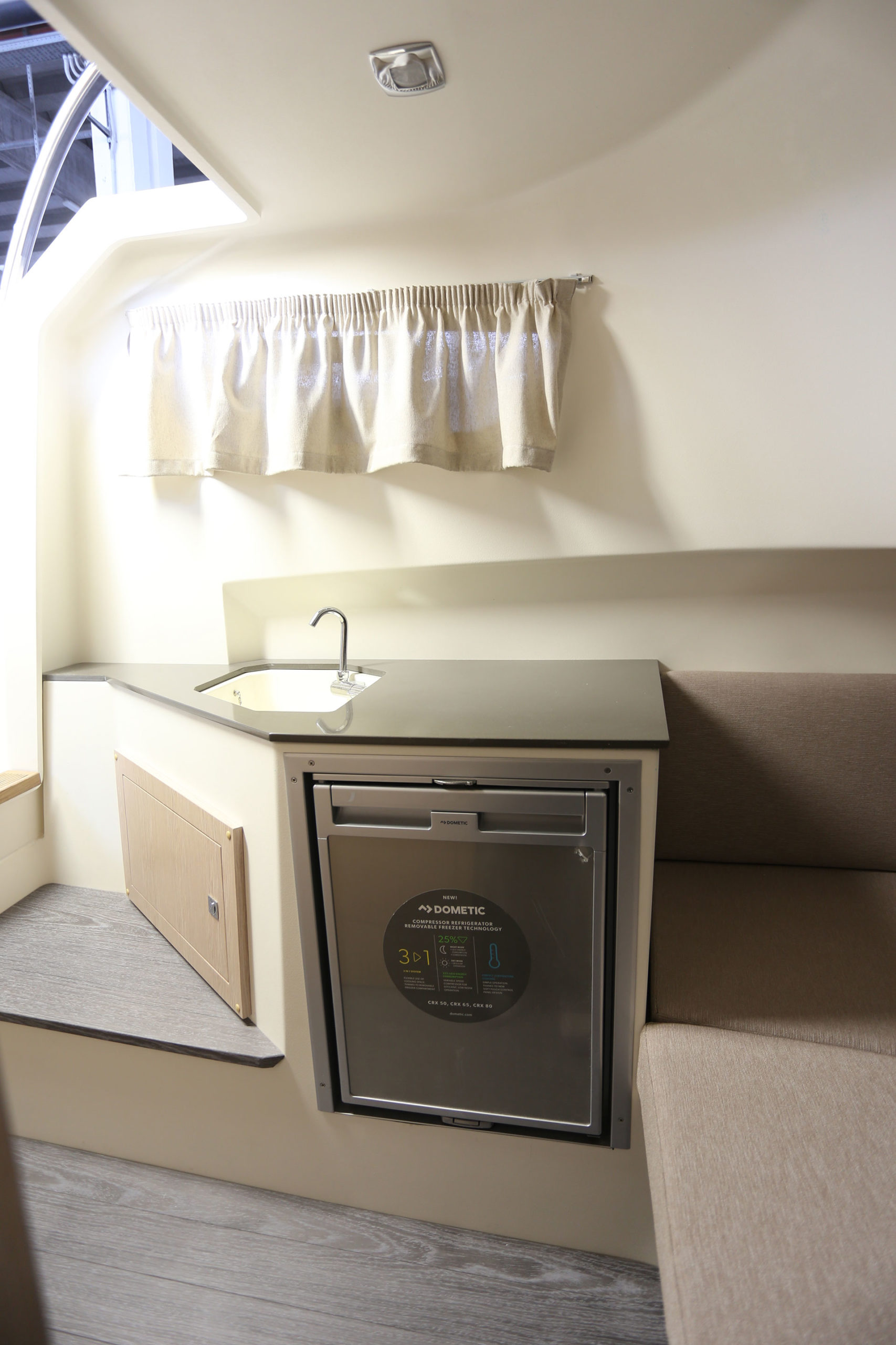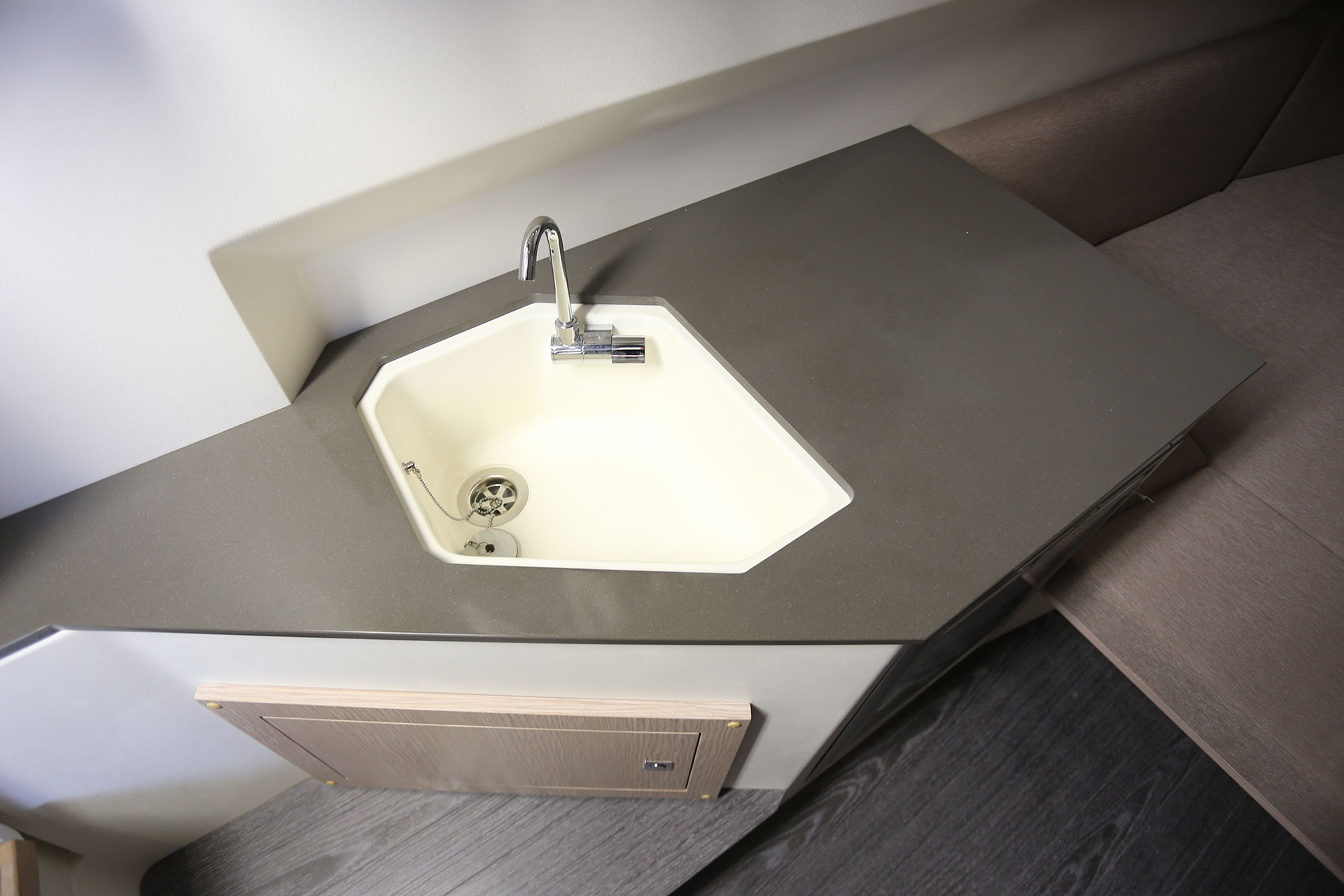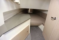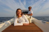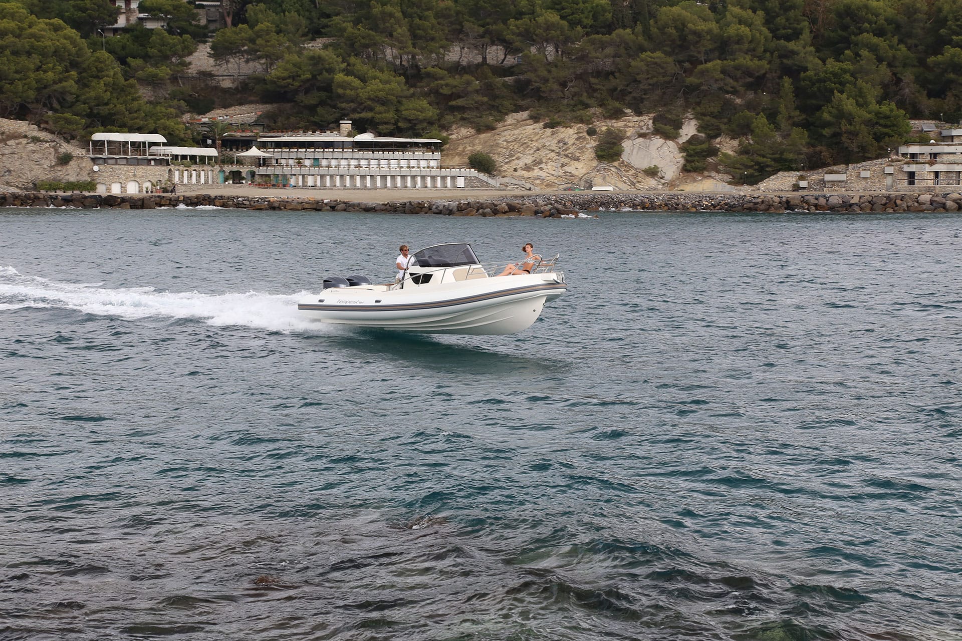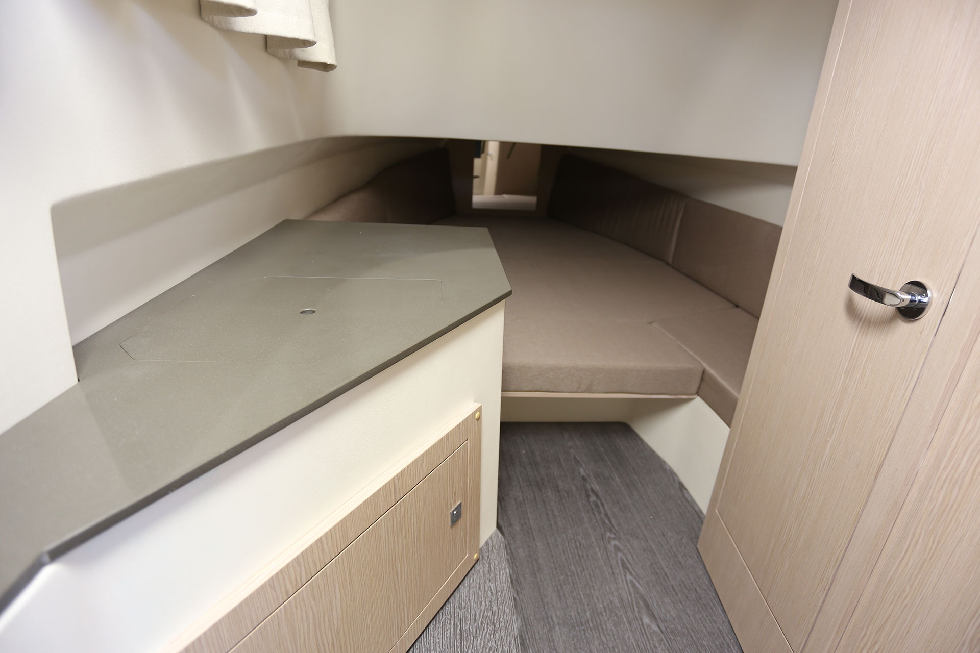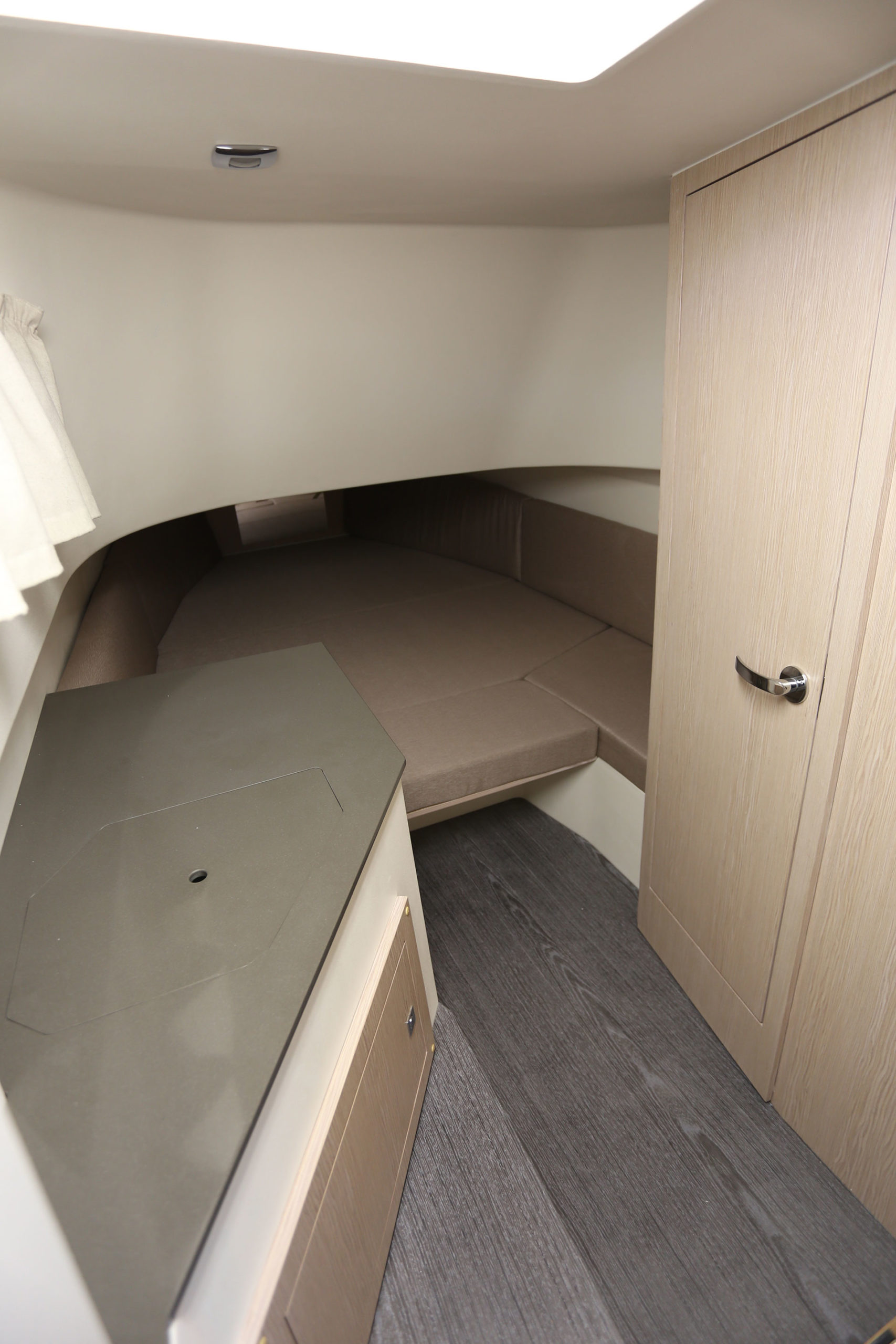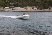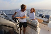 One of the first walkaround models, recently renewed in lines and deck spaces. The stern area is the real heart of the unit; face-to face seats and teak central table, it becomes a perfect social area. The front area is defined by a wide sundebed space. The underdeck cabin with its private toilet, gives max comfort. Great performances and reliability, a wide range of STD equipments.