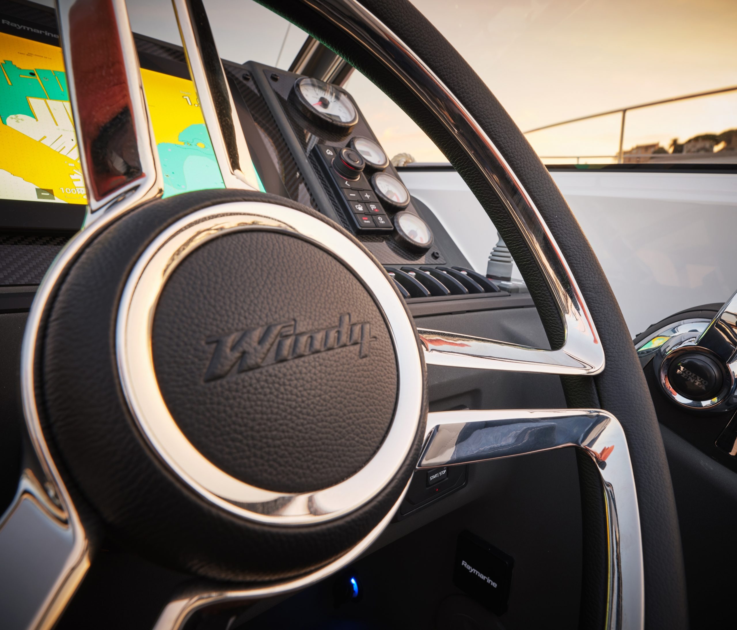 - Upgraded steering wheel Black Mesola with embossed Windy logo