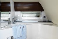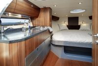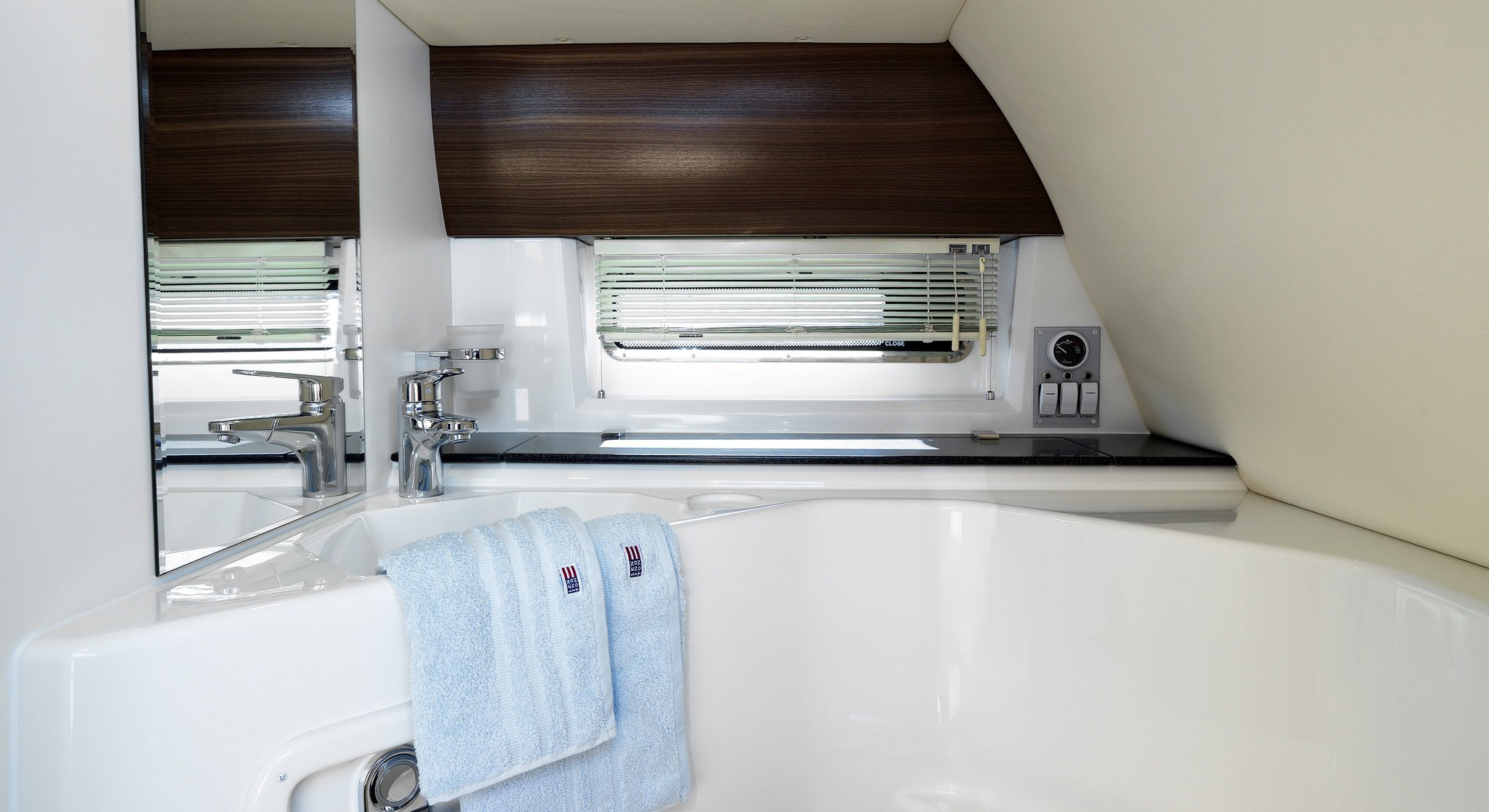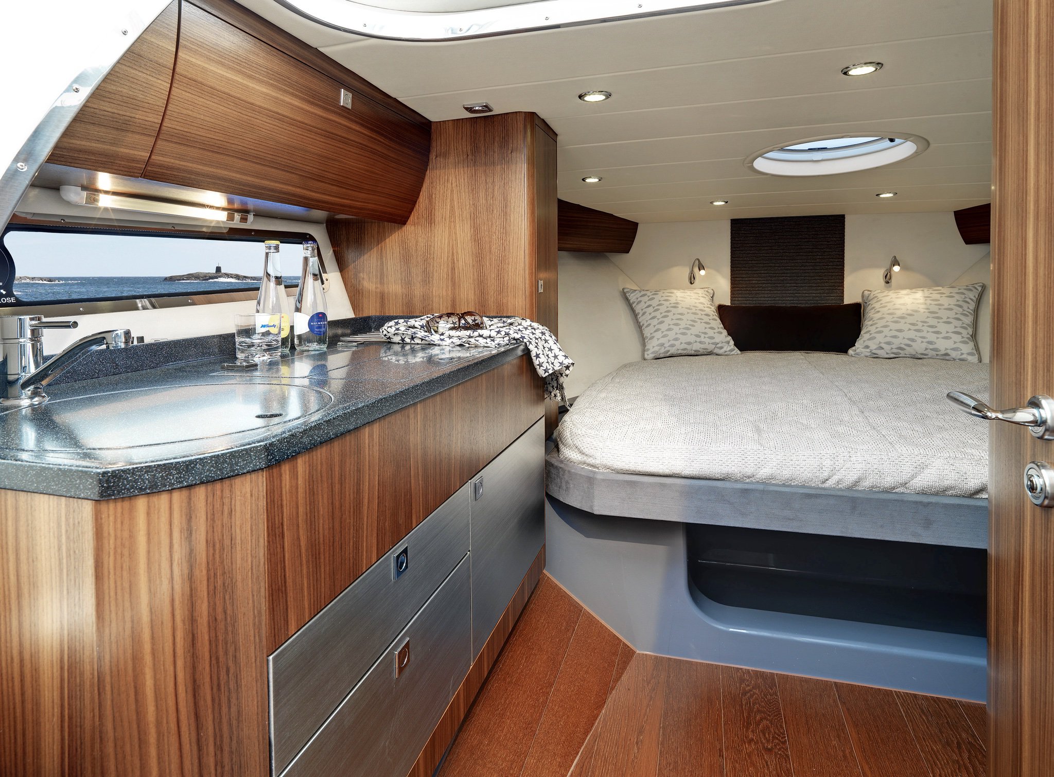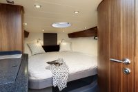 The quality in the construction and fittings is self-evident, from the luxurious finish in the two berth cabin, galley area and separate toilet compartment, to the sumptuous cockpit seats and sunbed.